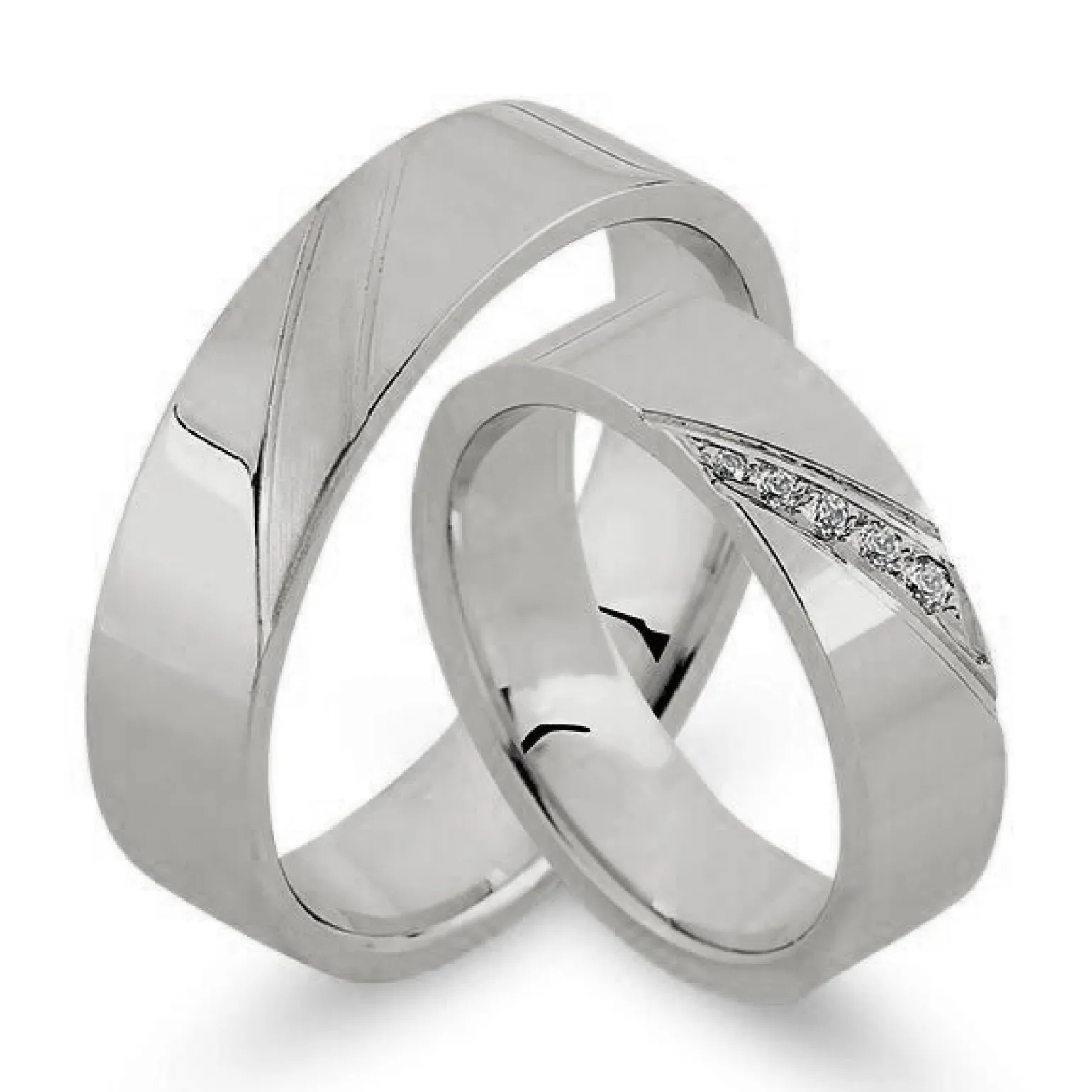 Rhodinierte Eheringe aus Silber mit 4 Diamanten im Damenring