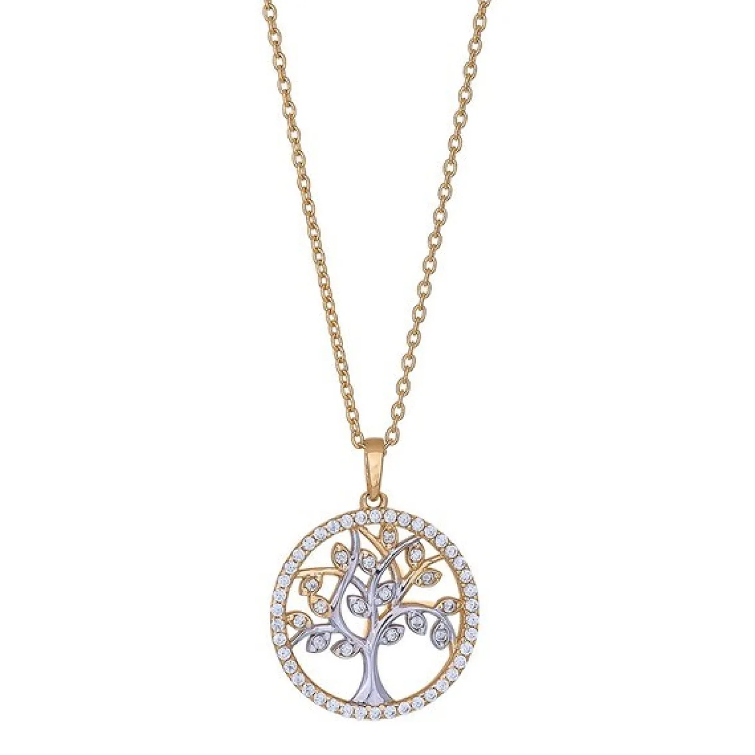 Lebensbaum aus 8 Karat Gold mit Zirkonia mit vergoldeter Kette