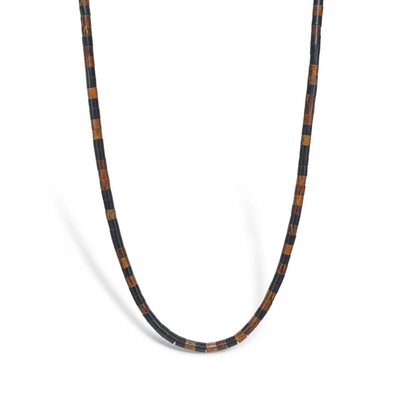 Die Kette ist mit Perlen in Schwarz, Braun und hellem Treibholz bestückt, kann aber mit allen Perlen der Black Sun-Kollektion ergänzt werden. Kombinieren Sie die schönen Holzperlen mit Perlen wie dalmatinischem Jaspis, Achat, Jade, Perlmutt, echtem silber oder Gold.