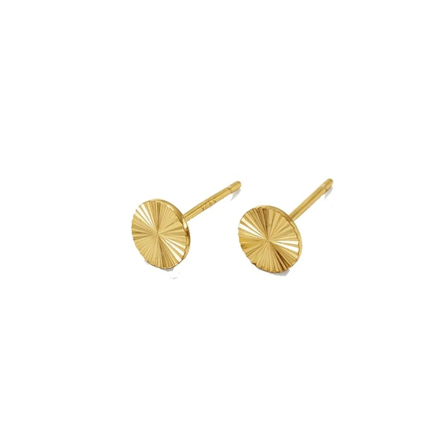 Clara-Ohrringe in vergoldete silber von ByBirch mit einem einfachen Sonnensymbol. Die Ohrringe sind aus vergoldete silber und messen 6 mm. Die Ohrringe sind so dimensioniert, dass sie mit mehreren anderen Ohrringen gleichzeitig getragen werden können.