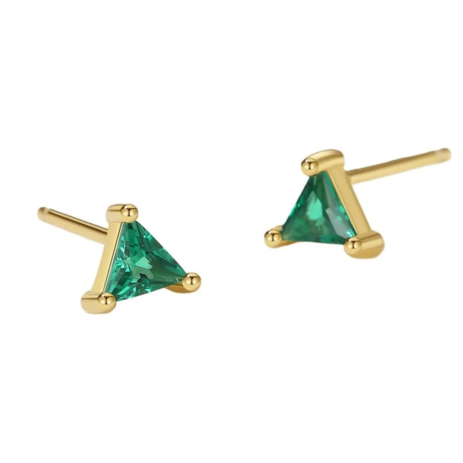 Evalina Ohrringe in vergoldete silber von ByBirch mit grünem Dreieck zirkonia. Die Ohrringe messen 5,3 mm.