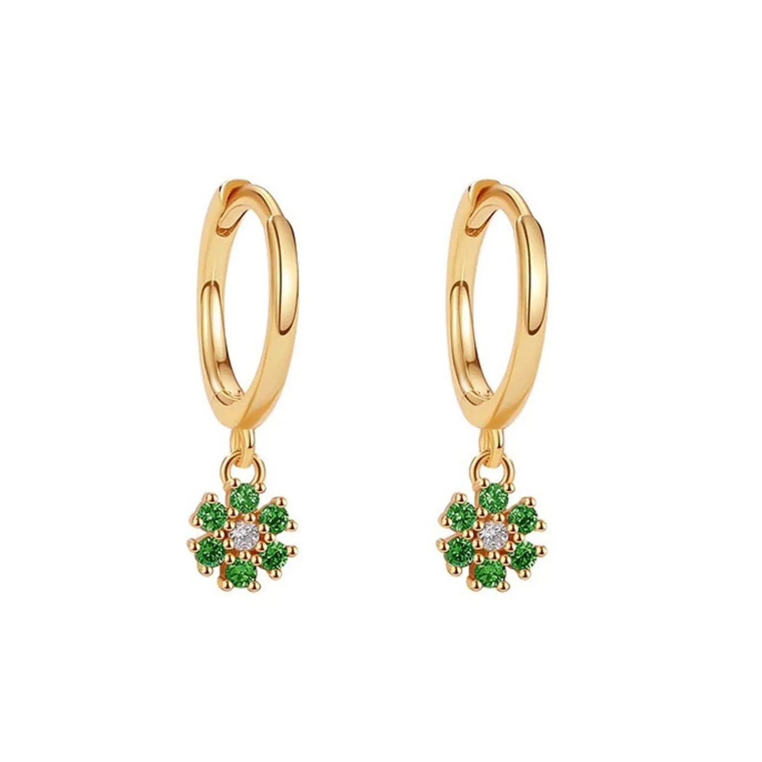 Flora-Ohrringe in vergoldete silber von ByBirch. Die feinen Creolen sind in einem glänzenden vergoldete silber gefertigt, mit einem feinen Blumenanhänger in Schwarz und Weiß zirkonia. Die Ohrringe haben die perfekte Größe, um mit anderen Ohrringen kombiniert zu werden.