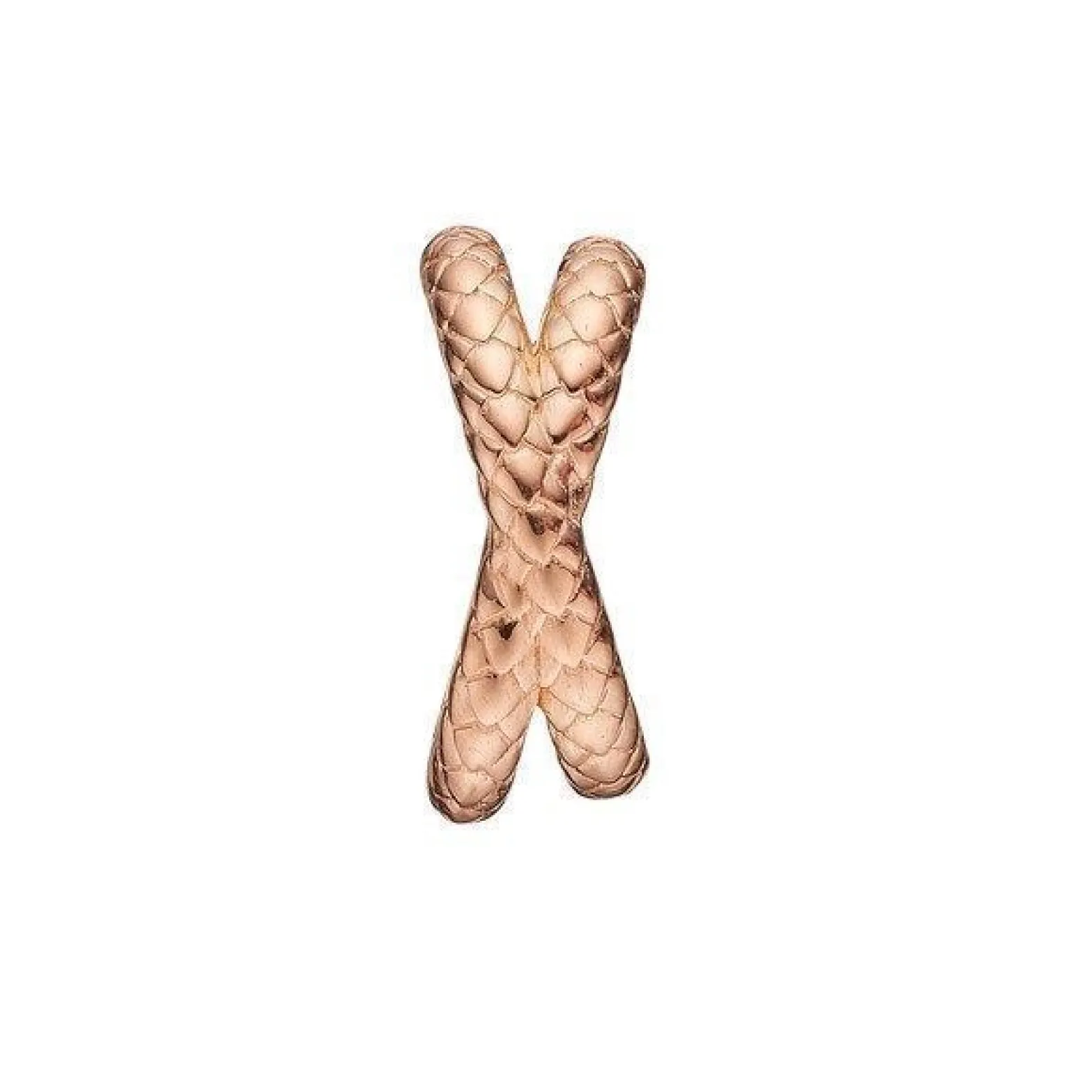 Roher Anhänger aus rosa vergoldetem Silber von Christina. Doppelte Charms bilden ein Kreuz über Ihrem Armband.