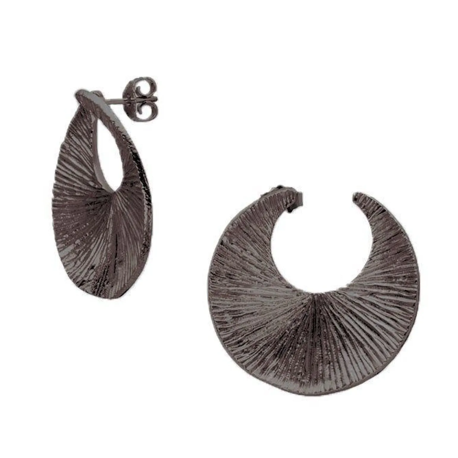 Die leicht geriffelte Oberfläche der Ohrringe reflektiert das Licht wunderschön, und die offene Mitte verleiht den Ohrringen einen modernen grafischen Look.