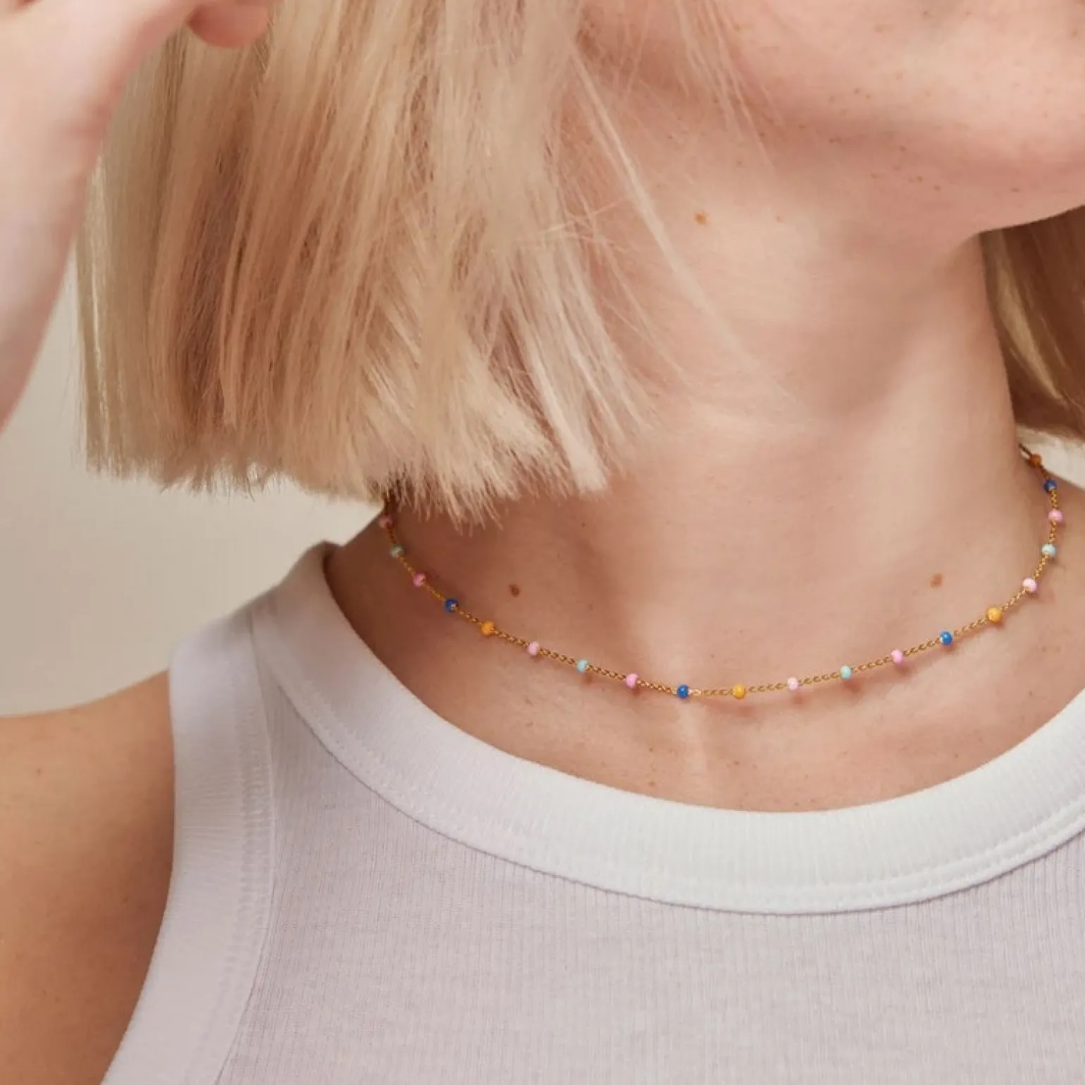 „Color Twist“ ist der Name von HS23 von Enamel Copenhagen. Eine überschwängliche Kollektion, die voller Farben und schöner Formen ist. Die Materialien sind silber und vergoldete silber in glänzenden organischen Formen. Die Farben sind Altrosa, Mint und Orange mit einem Hauch von Miró-Blau in Kombination mit Perlen.
