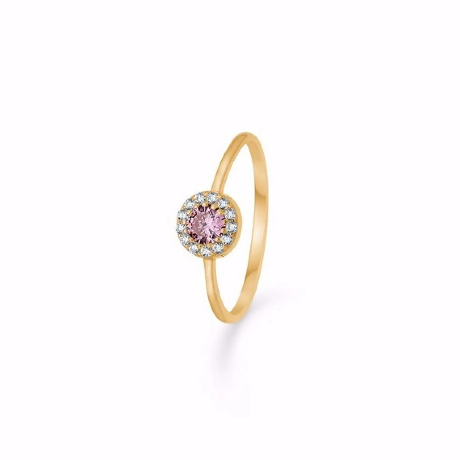 8 Karat Goldring mit einem rosafarbenen und mehreren weißen Zirkoniasteinen. Dieser Ring ist ein echter Prinzessinnenring.