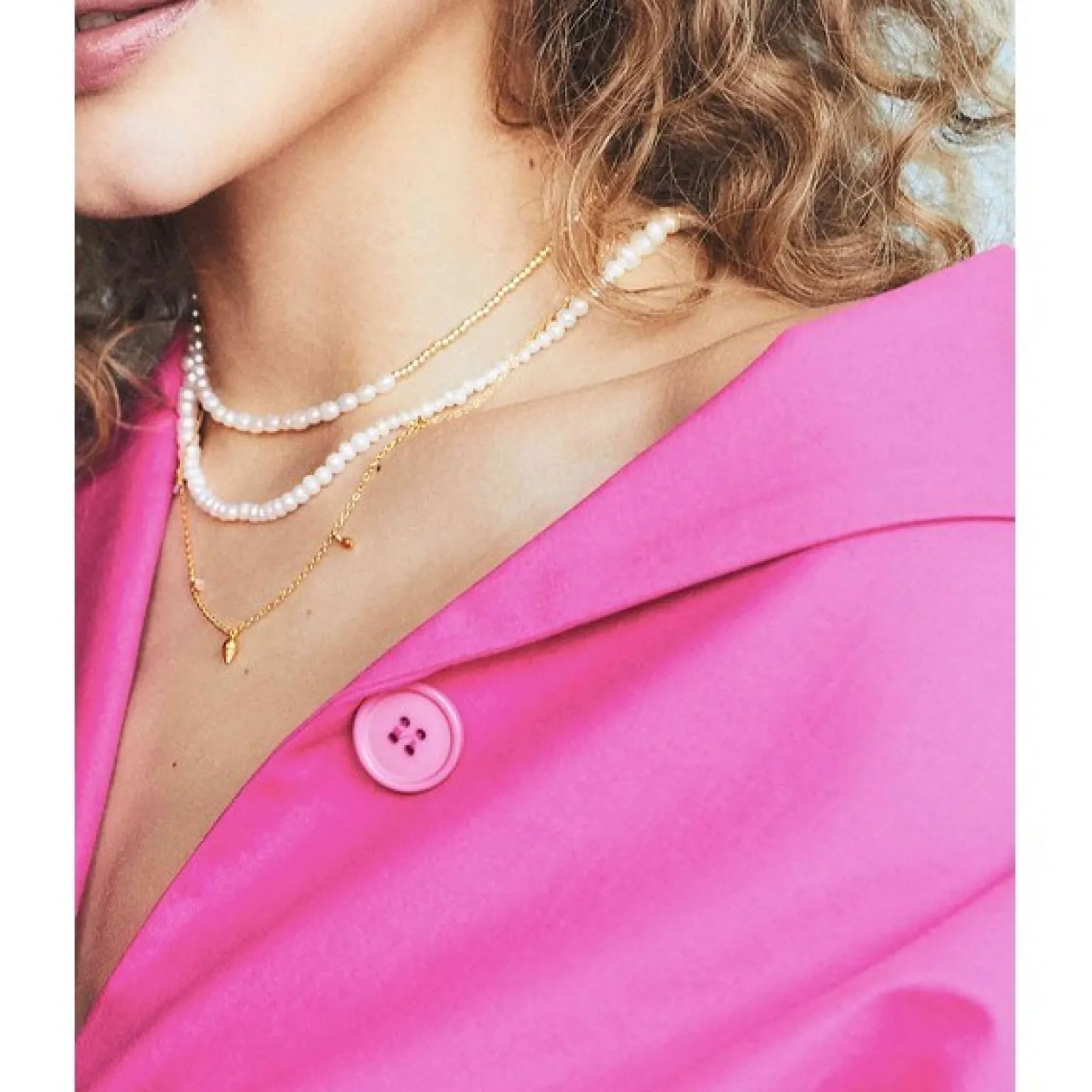 Super einfache, aber schöne Aaliyah Halskette in 18kt. vergoldete silber von Hultquist Copenhagen. Die unglaublich schlichte, aber feminine Halskette ist mit Süßwasserperlen und Glasperlen in verschiedenen Farben verziert. Die Länge beträgt 41 cm + ein Verlängerungsstück von 5 cm. Das bedeutet auch, dass man sie sehr elegant mit anderen oder längeren Ketten kombinieren kann.