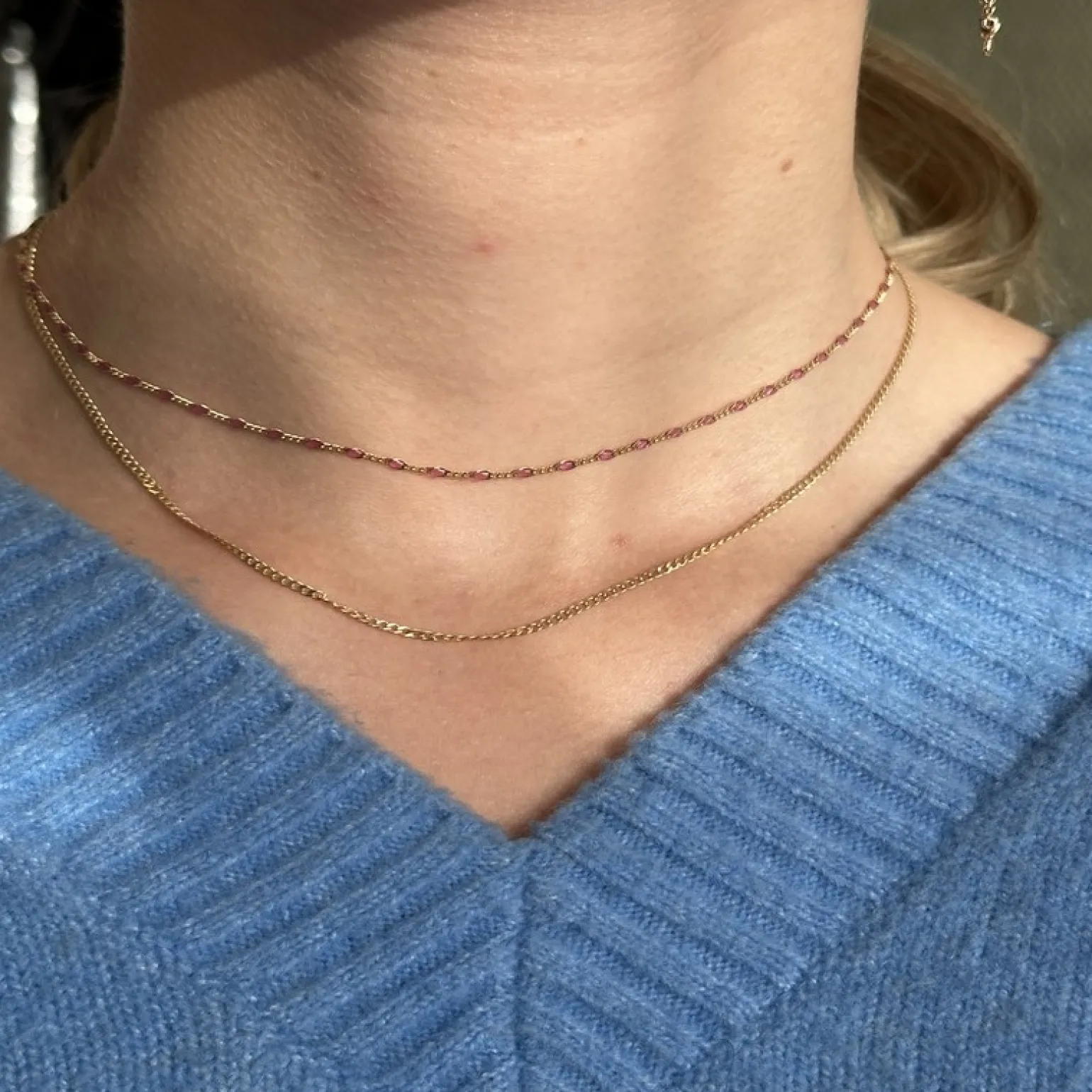 Die Halskette misst 42 + 3 cm inkl. die verstellbare Verlängerungskette.