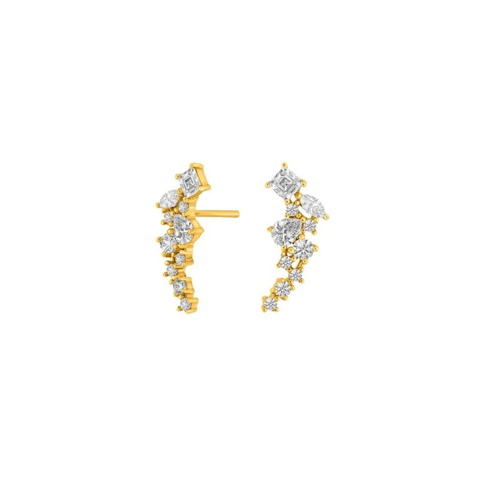 METTENOR sind Ohrringe in vergoldete silber von Joanli Nor. Die eleganten Ohrringe sind mit weißen zirkonia in verschiedenen Formen und Größen verziert.