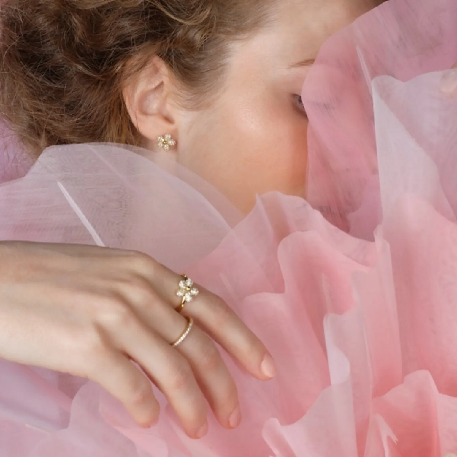 Phoebe Ohrringe in vergoldete silber von Joanli Nor mit zirkonia . Die süßen Blumenohrringe sind mit weißen zirkonia besetzt. Die Maße der Ohrringe betragen 10,5 x 11,5 mm.