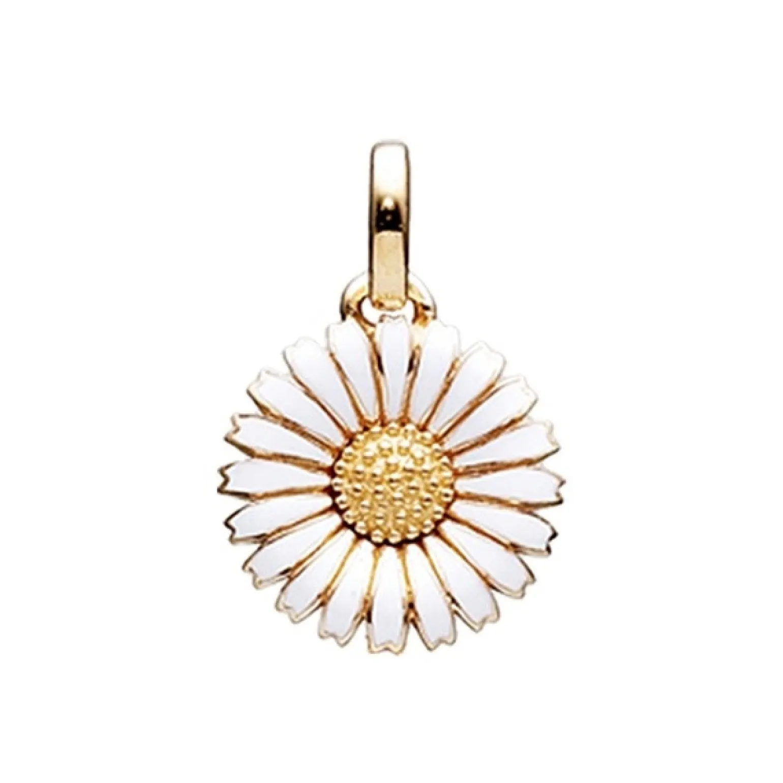 Die klassische Margerite zeigt sich hier als schöner Anhänger in einer schönen Kombination aus vergoldetem und weißem Email