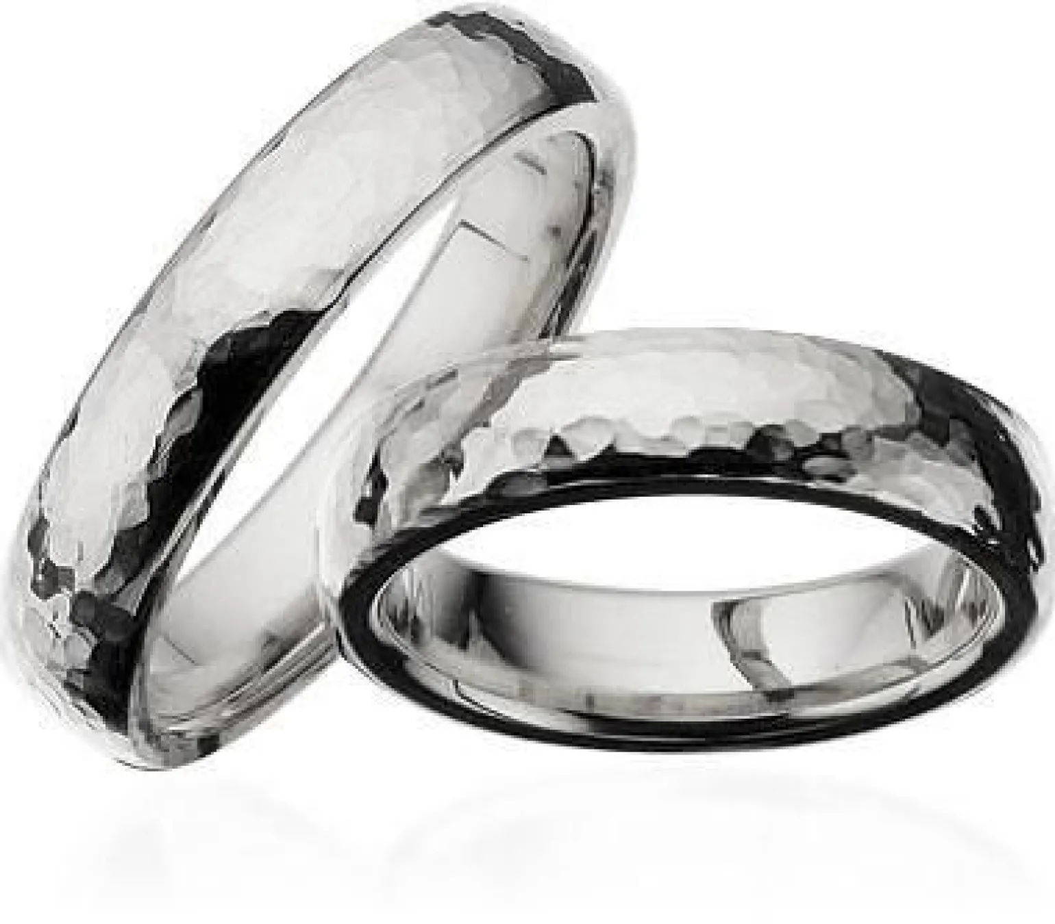 Leicht ovale gehämmerte Silberringe – 3,5 mm breit. Mit oder ohne Brillant