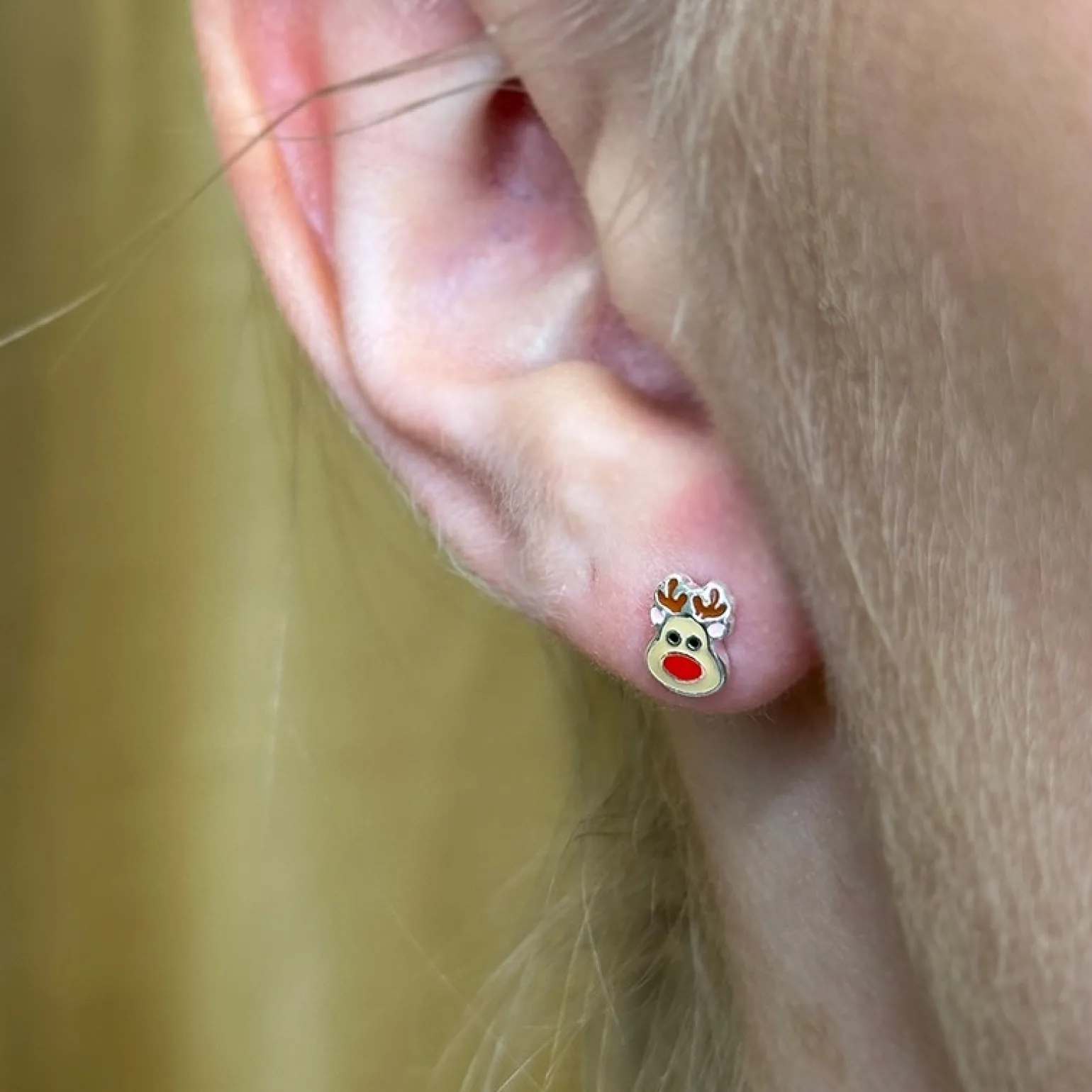 Luxuriöse Weihnachtsohrringe in silber mit Rudolf und rotem Nachbarn von byBirch . Die Ohrringe haben die Maße 5 x 9 mm. und sind süß und weihnachtlich.