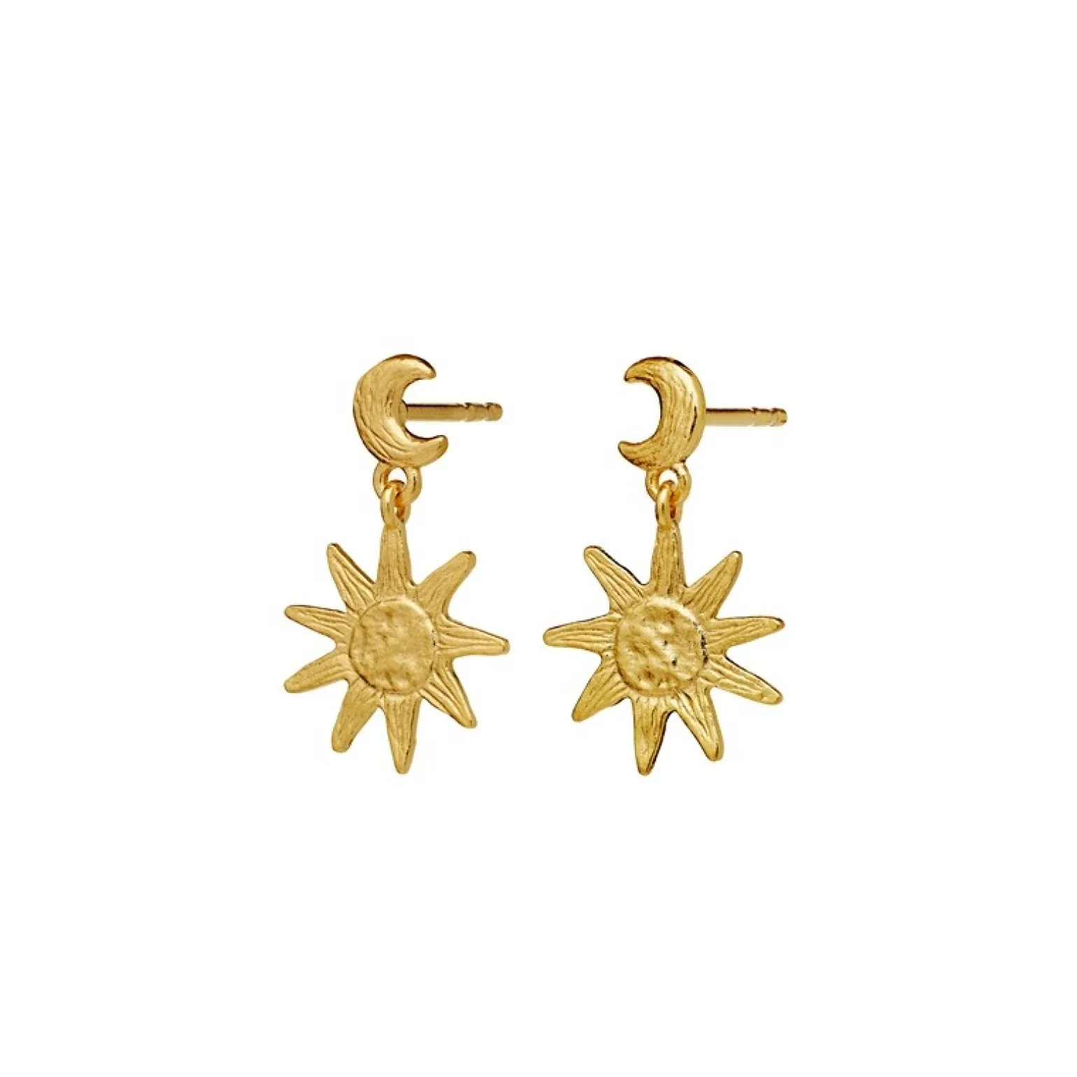 Cyra-Ohrringe in vergoldete silber von Maanesten. Die Ohrringe enthalten sowohl die Sonne als auch den Mond und symbolisieren den Wechsel zwischen Nacht und Tag. Die Ohrringe sind 20 mm in .