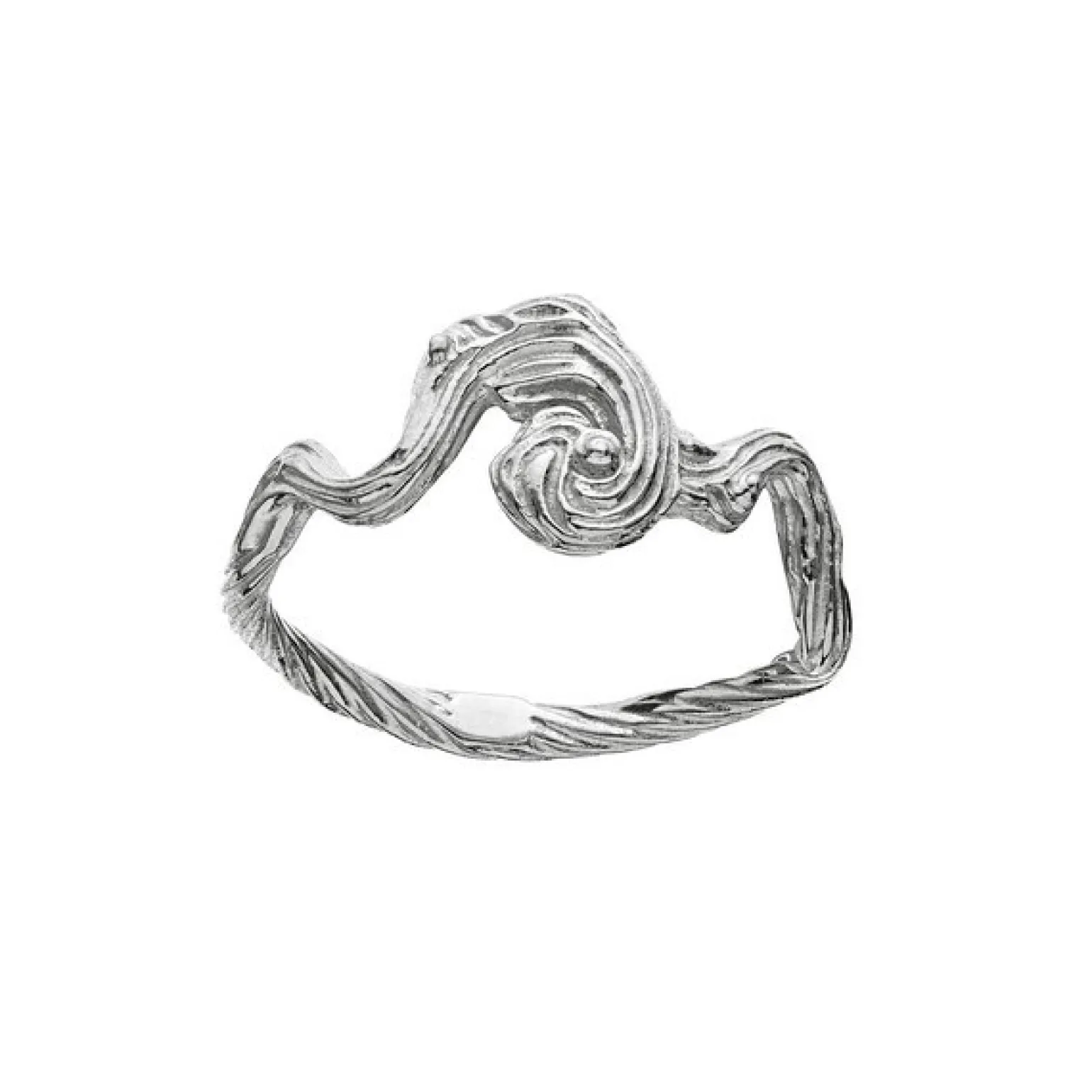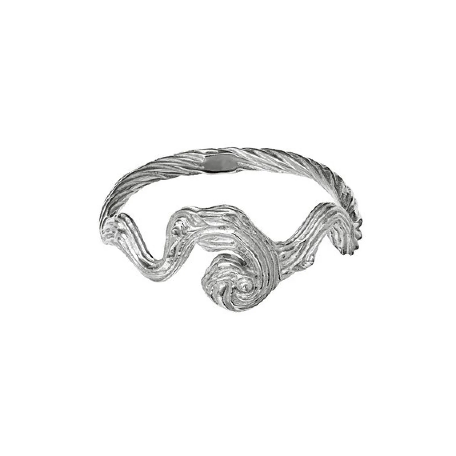 Der Freya-Ring aus Silber von Maanesten besteht aus einer schönen gerillten Oberfläche, die dem Nachthimmel oder den Strömungen im Meer ähnelt.
