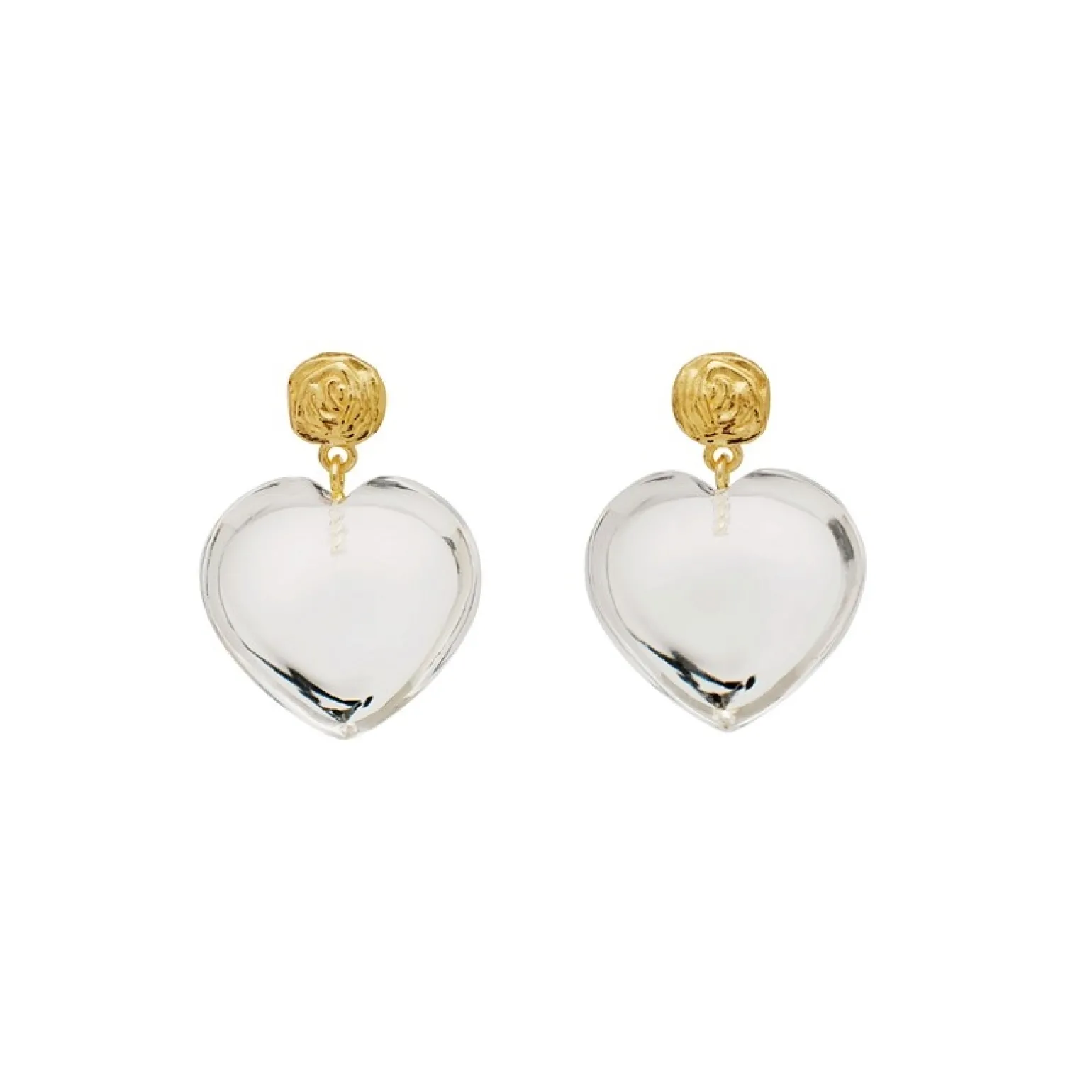 Lemona Grande-Ohrringe in vergoldete silber mit Kristall von Maanesten . Die wunderschönen großen Ohrringe sind in gefertigt. Ein kleiner Ohrring mit einem größeren Herzanhänger.
