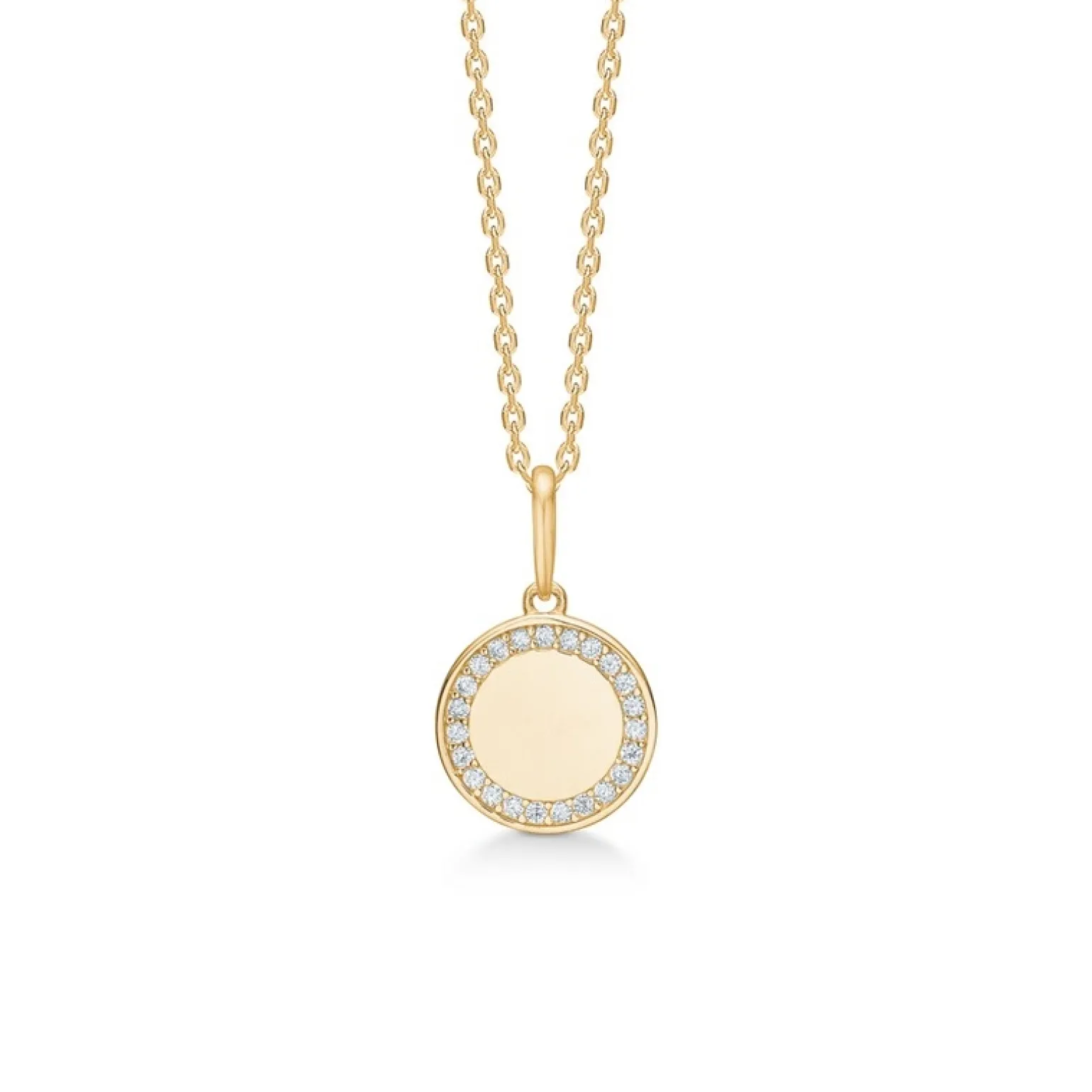 Der Cara-Anhänger aus 8-karätigem Gold von Mads Z hat einen klaren zirkonia Rand und kann auf der Rückseite graviert werden. Der kleine Anhänger wird ohne Kette geliefert, aber Sie können passende Ketten hier kaufen: Schmuckzentrum.de.