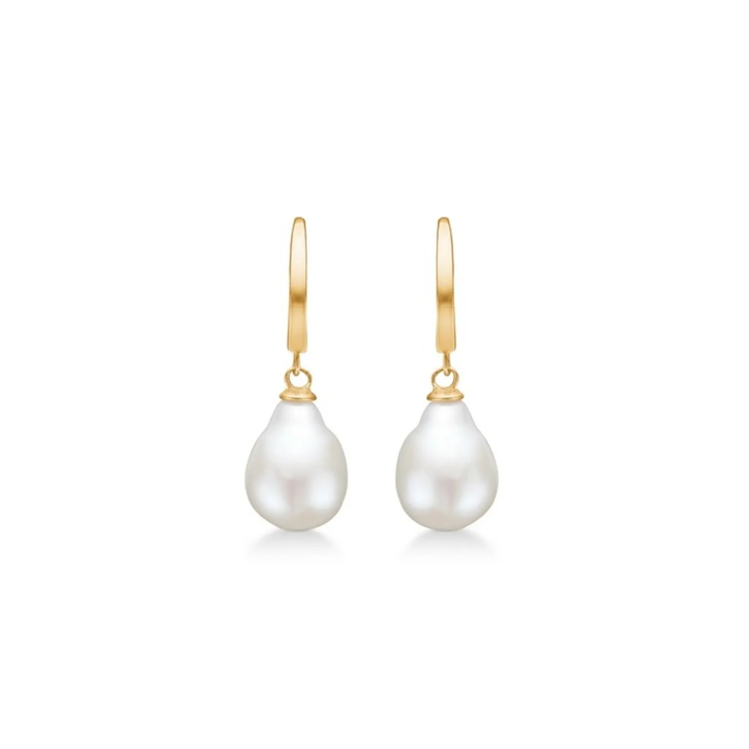 Coco Ohrringe aus 8kt. Gold mit Perlen von Mads Z WHITE LABEL. Der schöne Ohrring sitzt auf einem Paar atemberaubender goldener Haken, an denen schöne rustikale Perlen hängen.