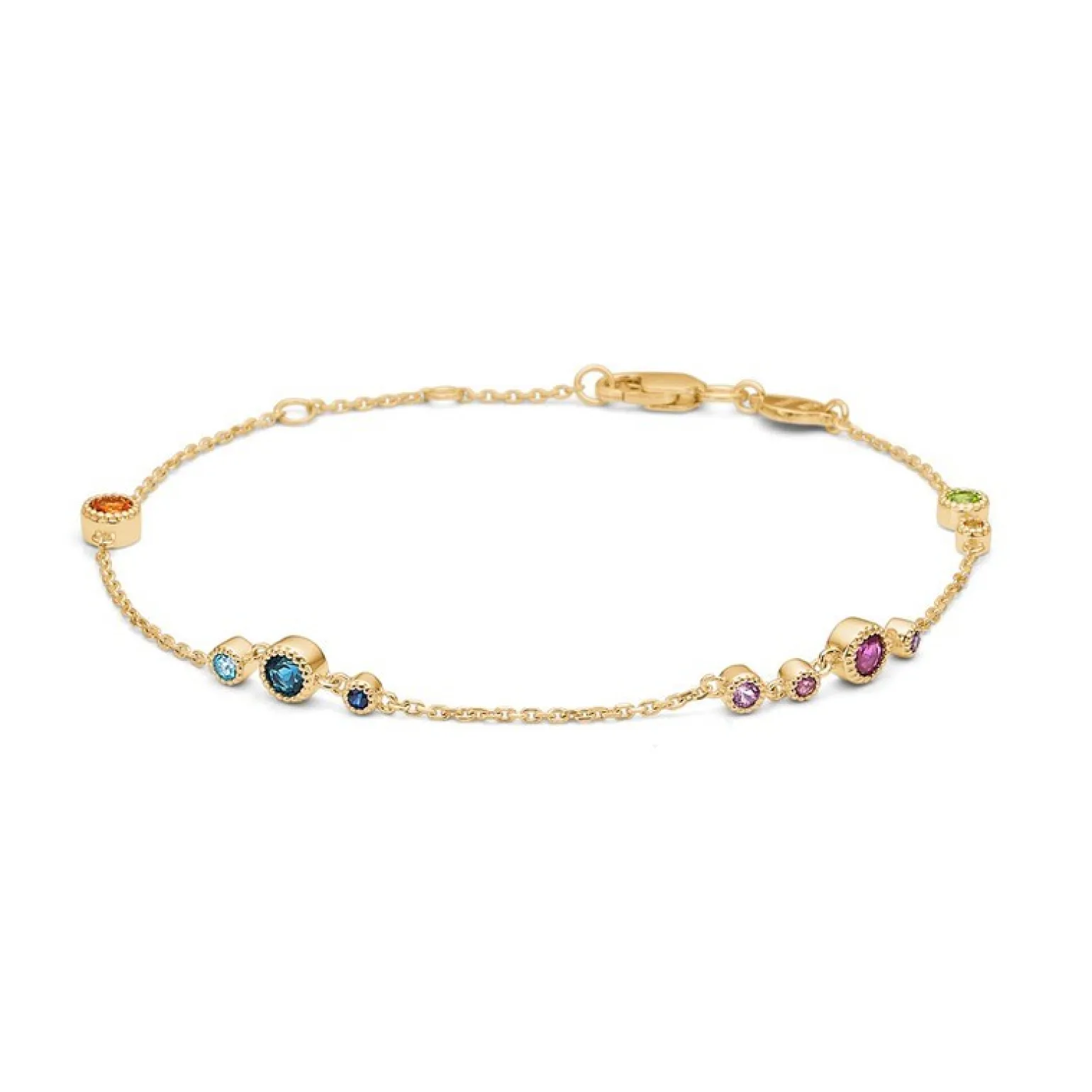 Tragen Sie das Armband mit den passenden Ohrringen und dem Rainbow-Ring.