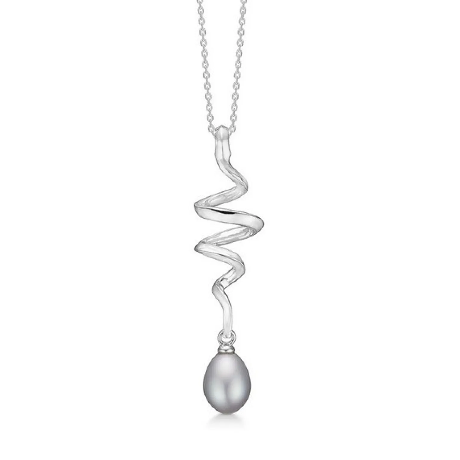 Eine wunderschöne Perlenkette aus der Silver Label Kollektion von Mads Z. Die Perlenkette hat eine schöne graue Perle in einer gedrehten Fassung.
