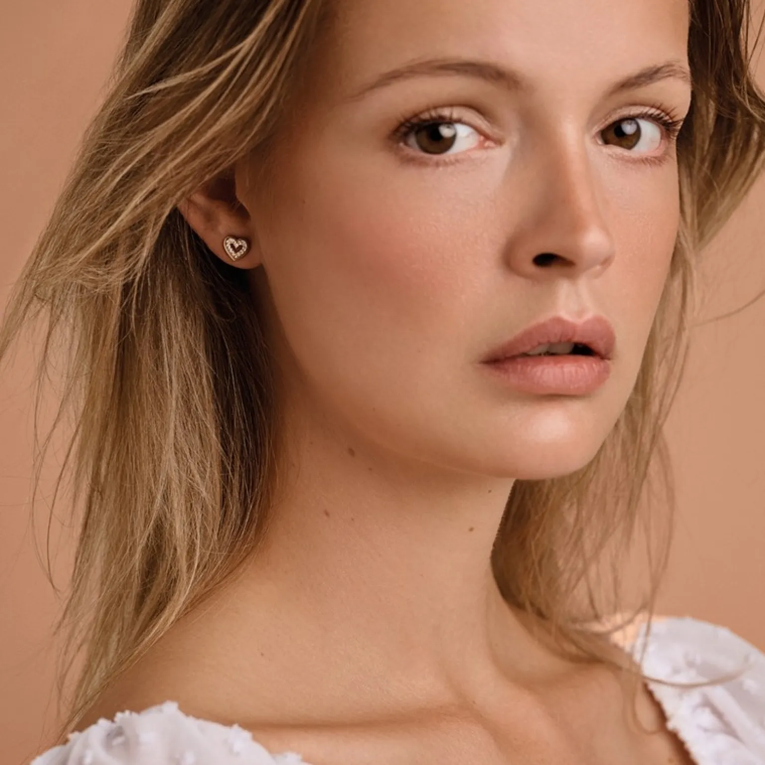 Wunderschöne Herzohrstecker aus 14 Karat Gold von Melfia. Die Ohrstecker sind mit weißem zirkonia überzogen, das von einem kleinen Goldrand umrahmt ist. Die Ohrringe sind klassisch und können sowohl im Alltag als auch zu festlichen Anlässen getragen werden.
