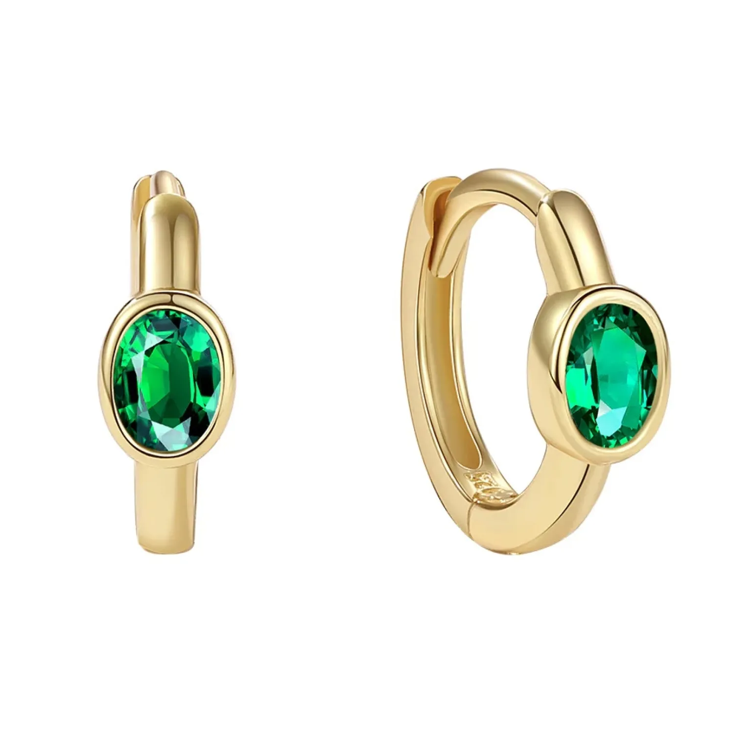 Carolina Creolen in 18 kt vergoldete silber mit schönem grünen Oval zirkonia von MerlePerle. Die Creolen haben einen Durchmesser von 10,7 mm und eine glänzende Oberfläche.