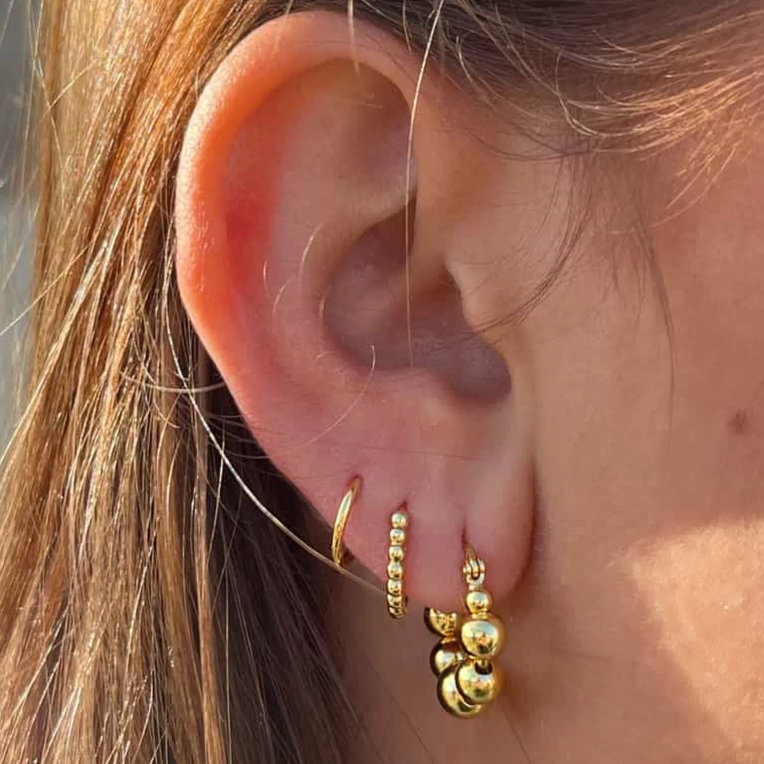 Casie Creolen in 18 kt vergoldete silber von MerlePerle mit einem Kugel-Design. Die Creolen sind 18 mm hoch.