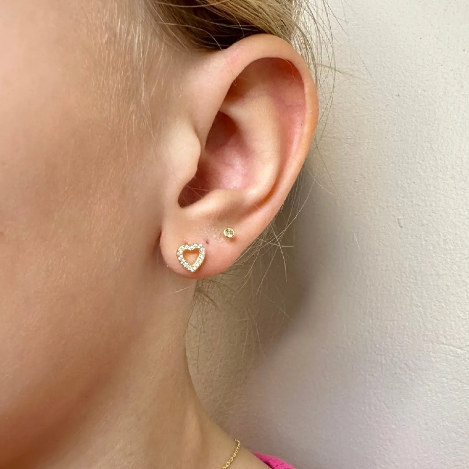 Herz-Ohrstecker in vergoldete silber mit schönen kubischen zirkonia. Die Ohrringe haben eine schöne Größe, die perfekt auf das Ohr des Kindes passt.