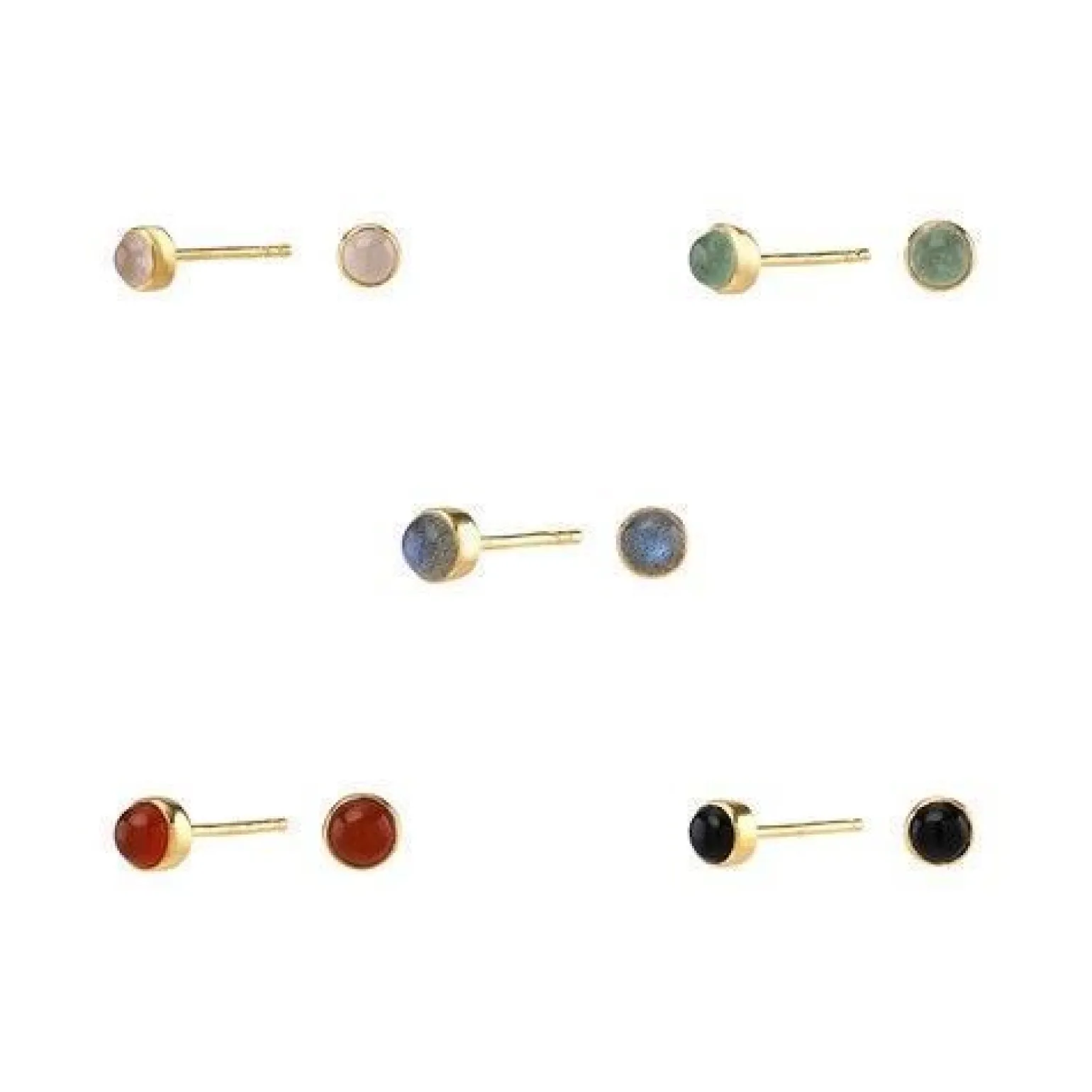 . Die Ohrringe sind in Silber und vergoldetem Silber und mit sechs verschiedenen Edelsteinen erhältlich.