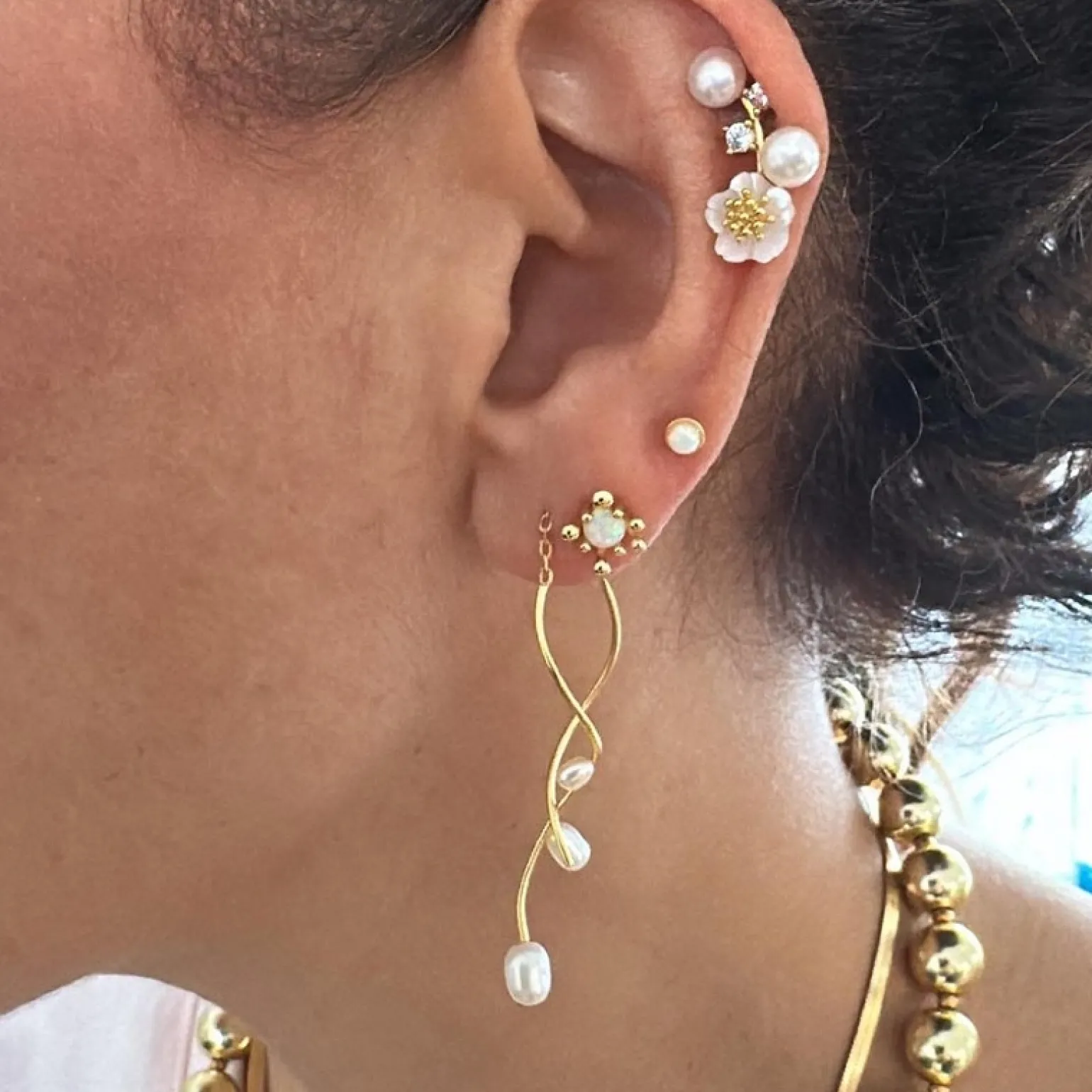 Nuni – Angelina Ohrringe in vergoldete silber mit Perlen – small
