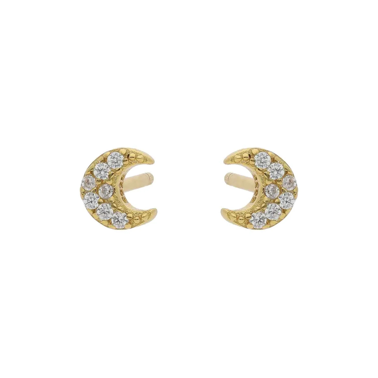 Moonie-Ohrringe in vergoldete silber von Nuni Copenhagen in Mondform. Die kleinen Mondohrringe haben die Maße 4,5 x 5mm und sind mit weißen zirkonia besetzt.