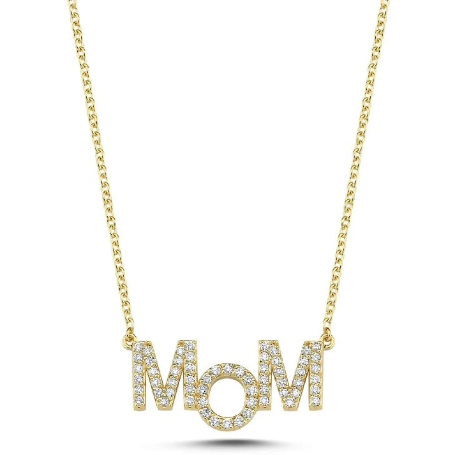 Halskette mit dem Wort MOM in Diamanten. Der Anhänger ist aus 14 kt. Gold und mit 0,30 ct. Diamanten besetzt. Die Diamanten sind in der Qualität Wesselton/Si. und sind um das gesamte Wort MOM gefasst. Die Halskette eignet sich perfekt als Muttertagsgeschenk, also verwöhnen Sie die Mütter in Ihrem Leben mit einem kleinen Extra an alltäglichem Luxus von Nuran.