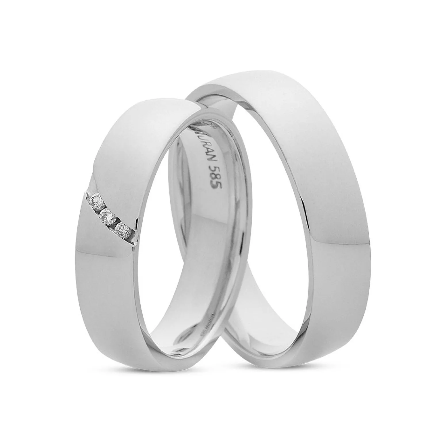 Rhodinierte Eheringe aus Silber mit 1 Brillanten im Damenring