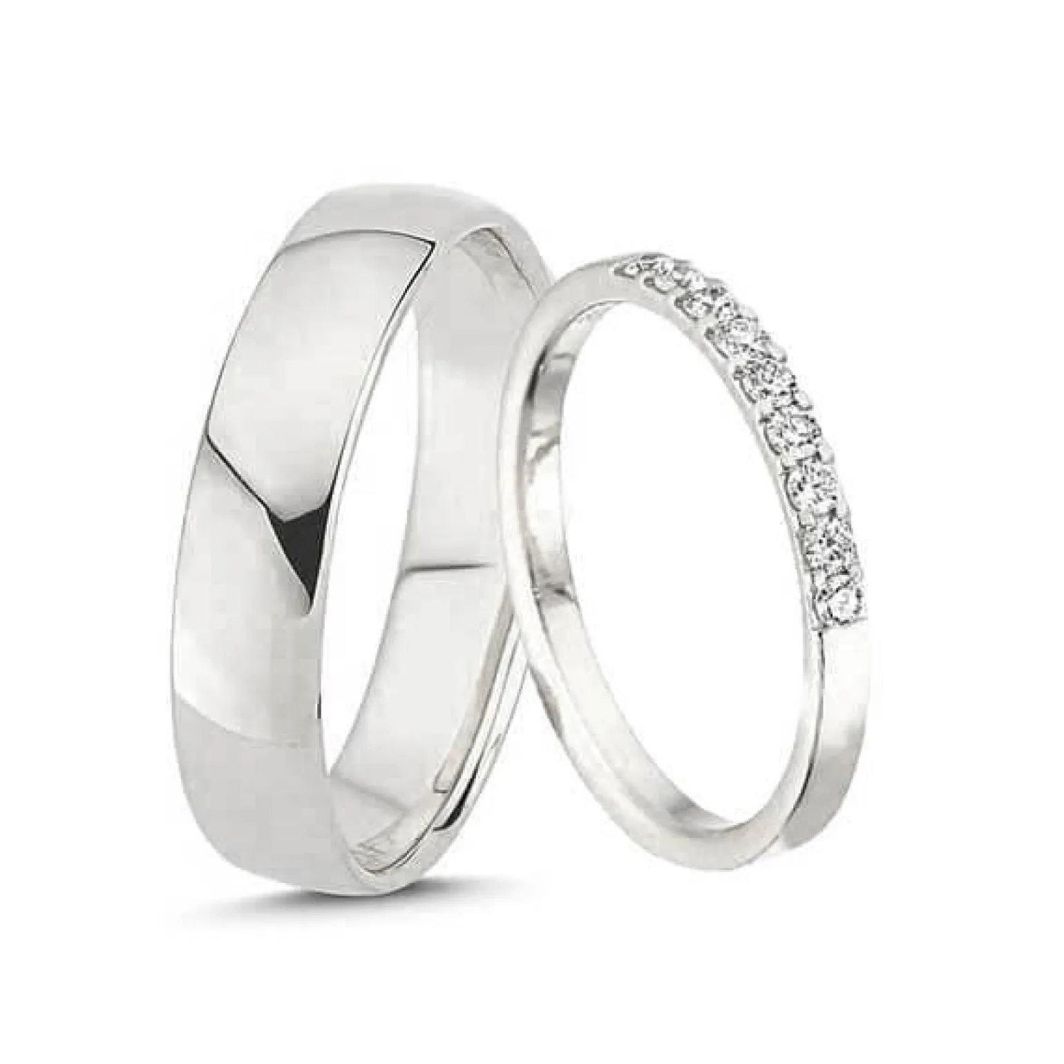 Rhodinierte Eheringe aus Silber mit 5 Diamanten im Damenring