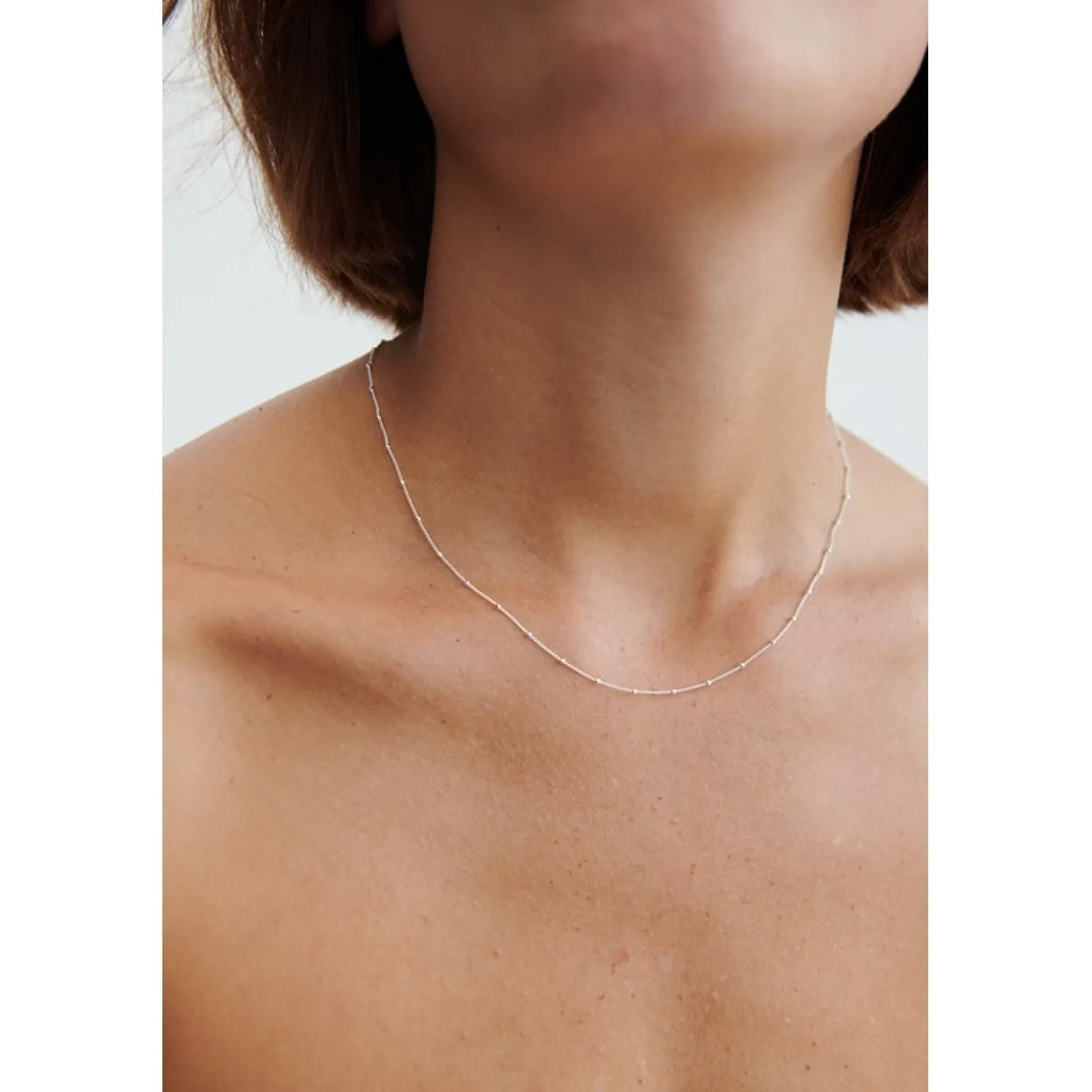 Die kleinen Kugeln der Eda-Kette von Pernille Corydon bestehen in poliertem silber . Die Halskette misst 40-45 cm. in der Länge inkl. ein 5 cm Verlängerungsstück
