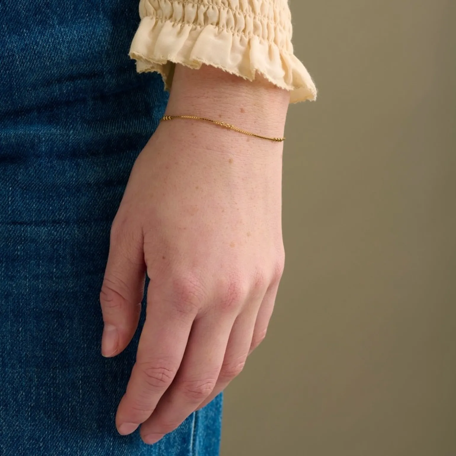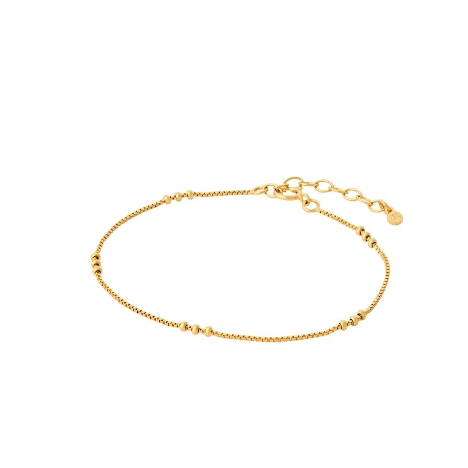 Eva armband in vergoldete silber von Pernille Corydon. Ein ganz klassisches und zeitloses Design ist das Eva-Armband und mit einer Kette und den einfachen Kugeldetails ist das Armband leicht mit anderen armband zu tragen. Das Armband ist in der Länge verstellbar und misst 16-19 cm.