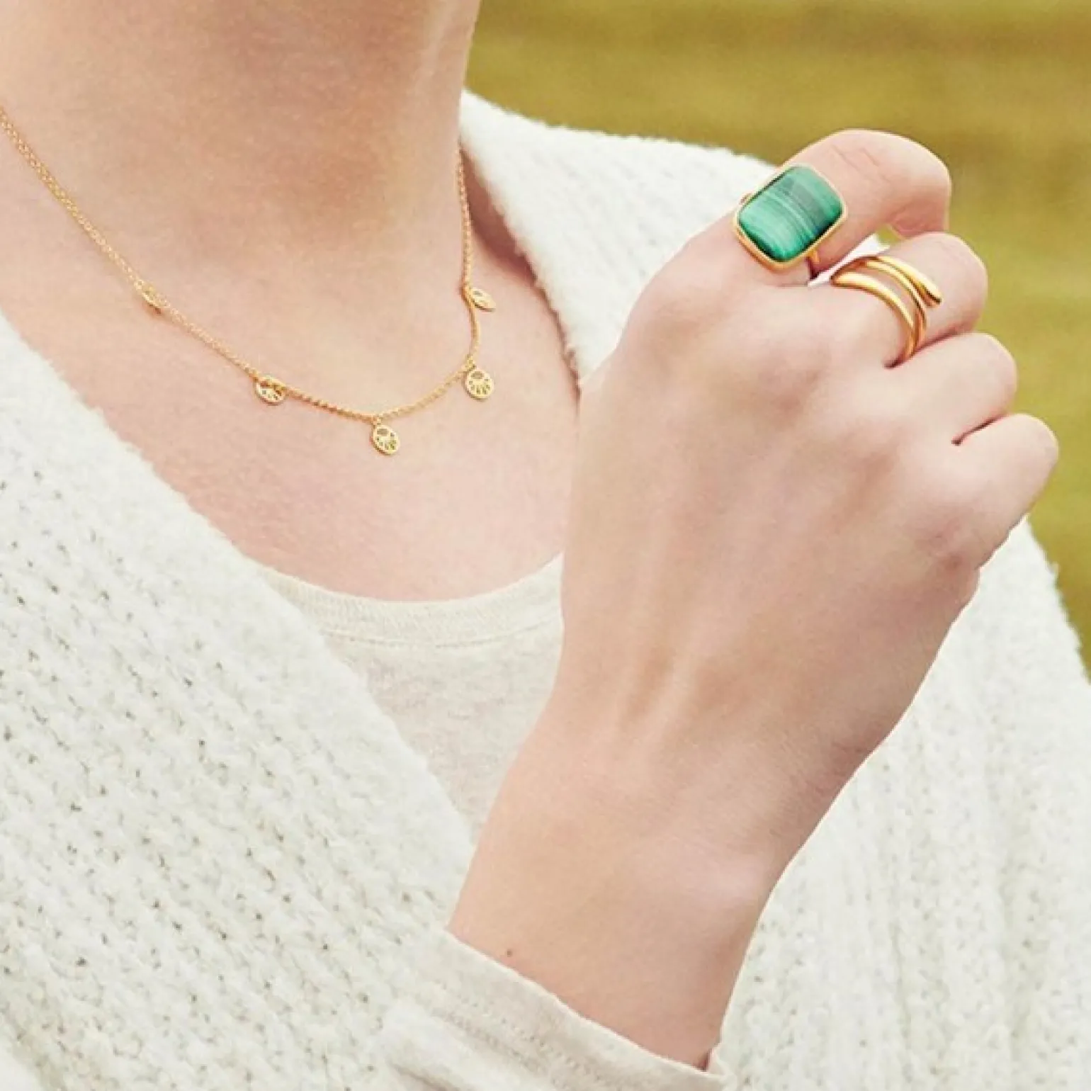 Die Halskette ist auch in vergoldet erhältlich.