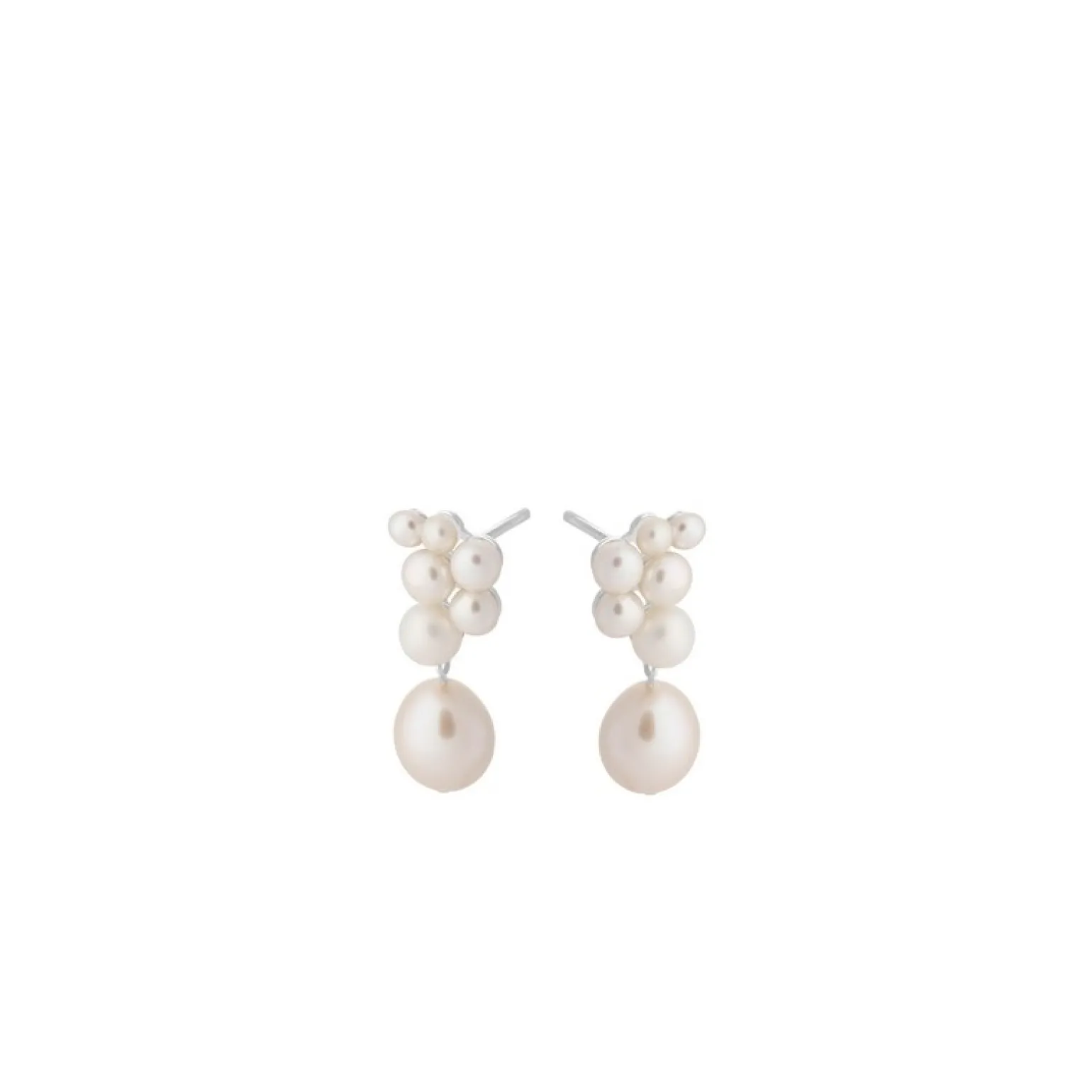 Ocean Treasure Ohrstecker in silber mit Büscheln aus weißen Süßwasserperlen. Die Ohrringe werden von Pernille Corydon für den Sommer 2023 hergestellt.