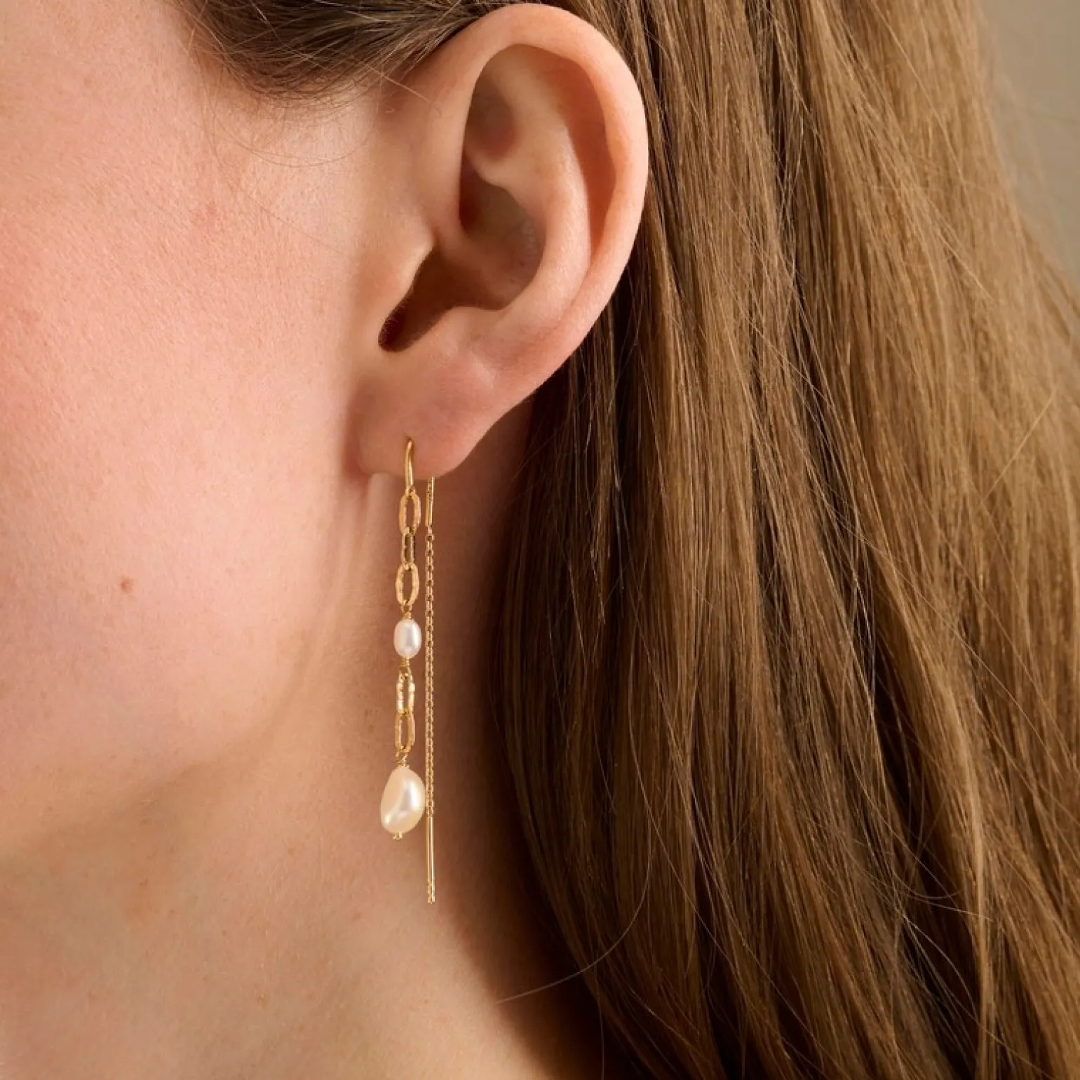 Seaside Ohrringe in vergoldete silber von Pernille Corydon. Die Ohrringe haben zwei Barockperlen an jedem Ohrring.