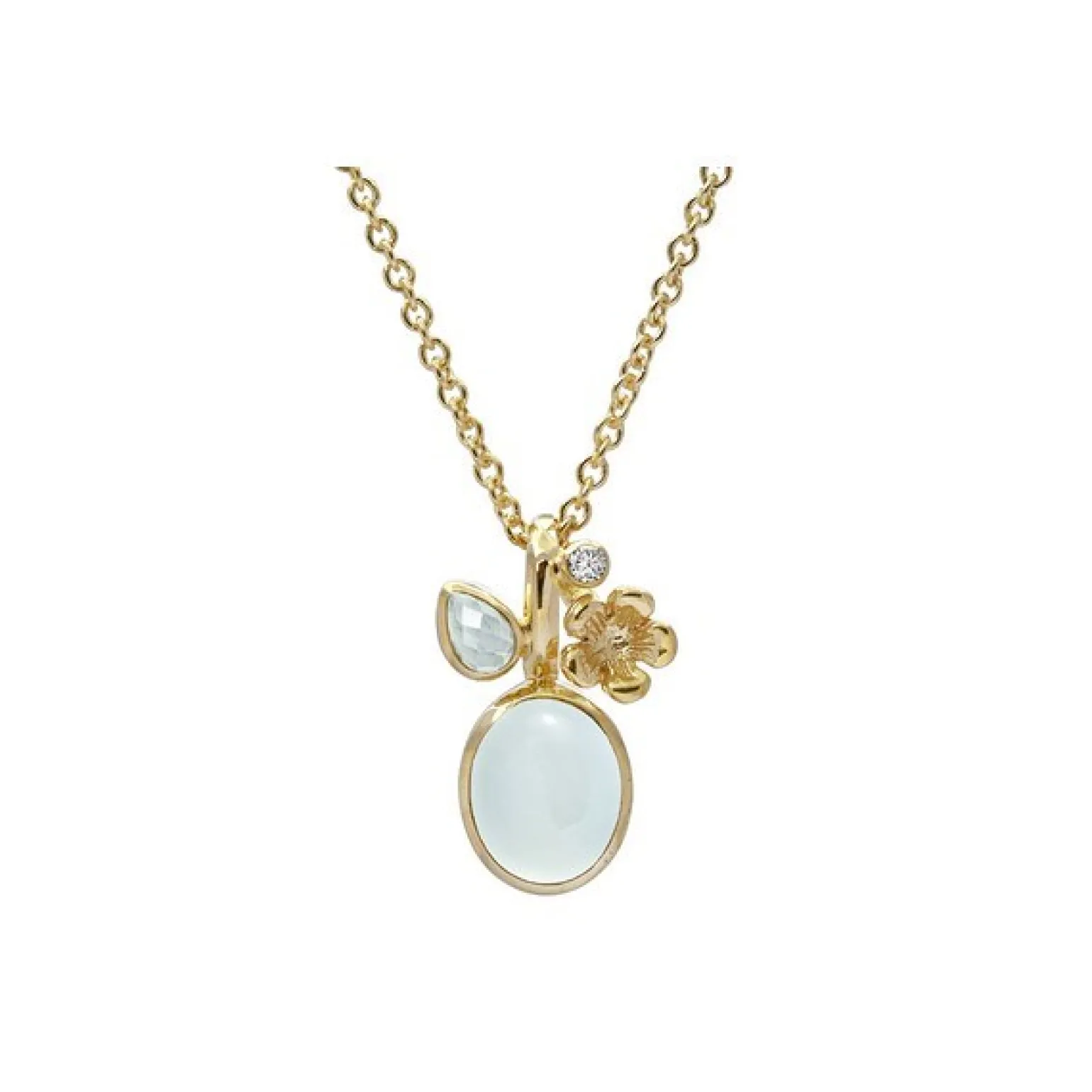 Der Anhänger ist aus vergoldetem Silber gefertigt und enthält einen wunderschönen Calcedon.