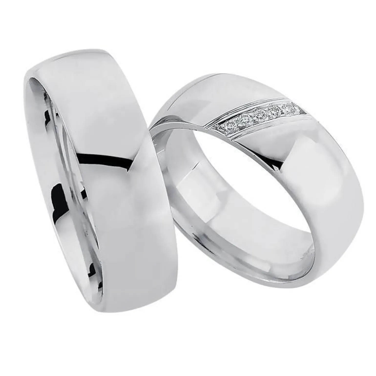 Rhodinierte Eheringe aus Silber mit 9 Diamanten im Damenring