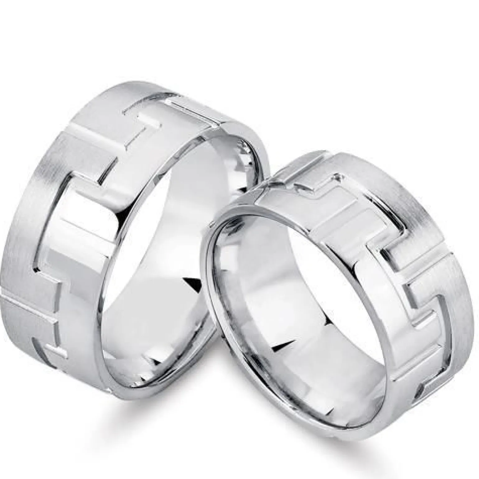 Rhodinierte Eheringe aus Silber mit 6 Diamanten im Damenring