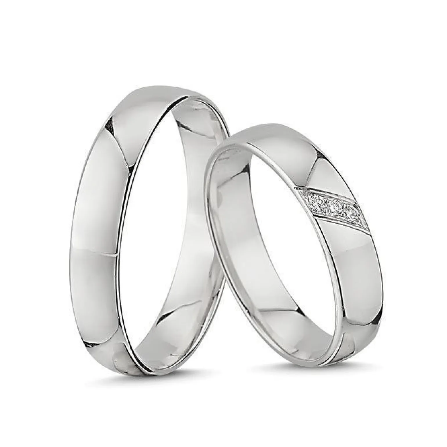 Die Diamanten im Damenring sind quer über den Schaft des Rings platziert, was eine schöne asymmetrische Optik ergibt.