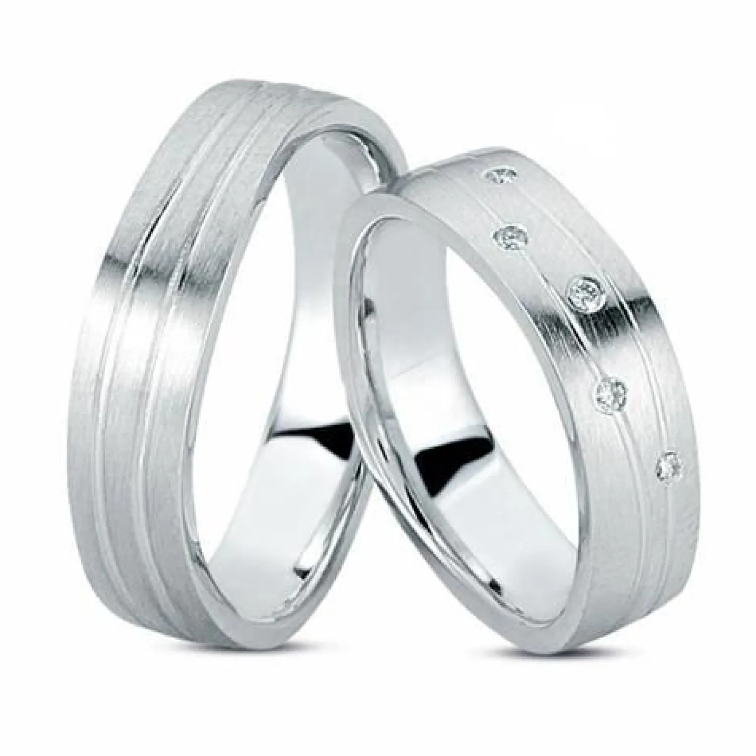 Rhodinierte Eheringe aus Silber mit 4 Diamanten im Damenring