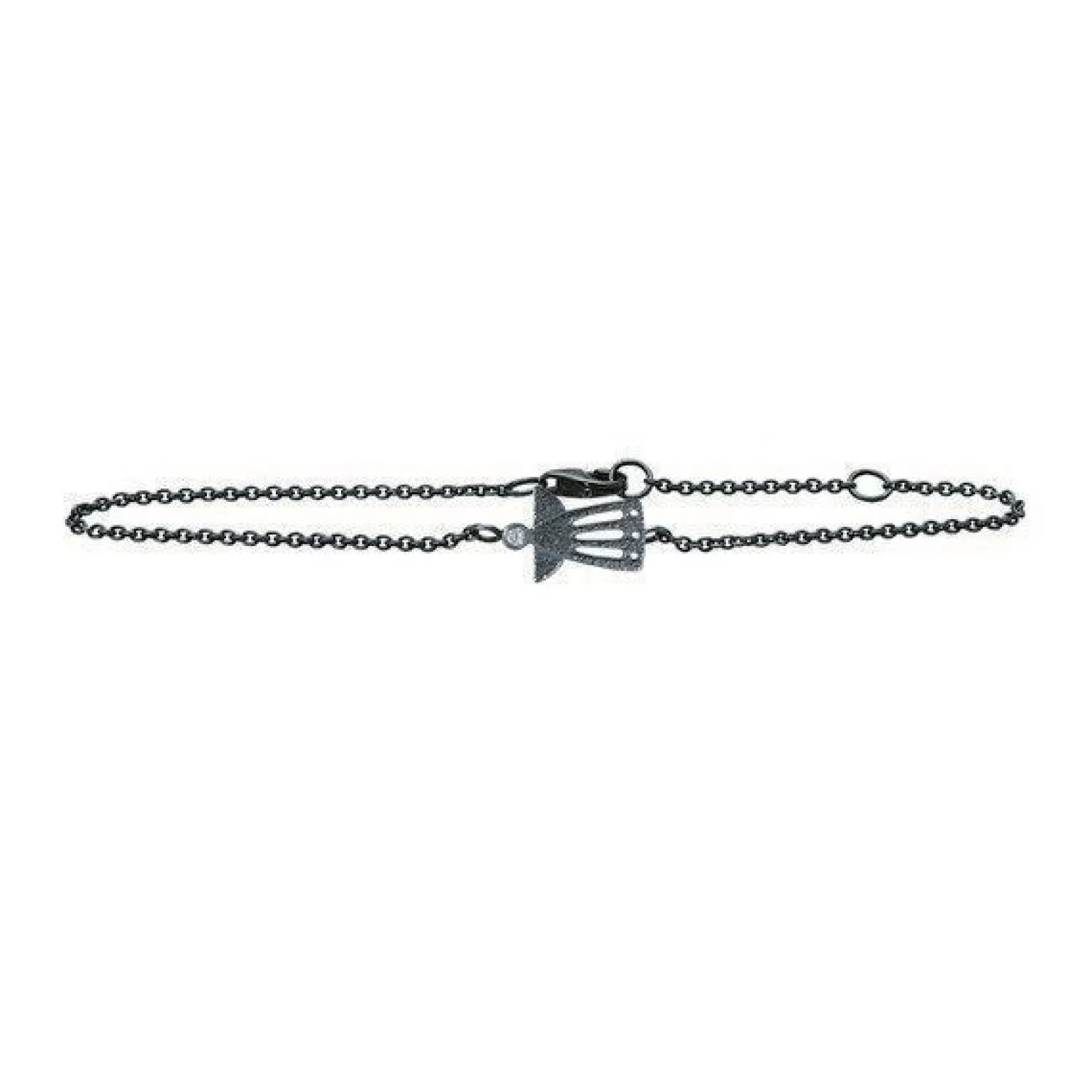 Das Armband ist aus schwarz oxidiertem Silber mit Zirkonia.