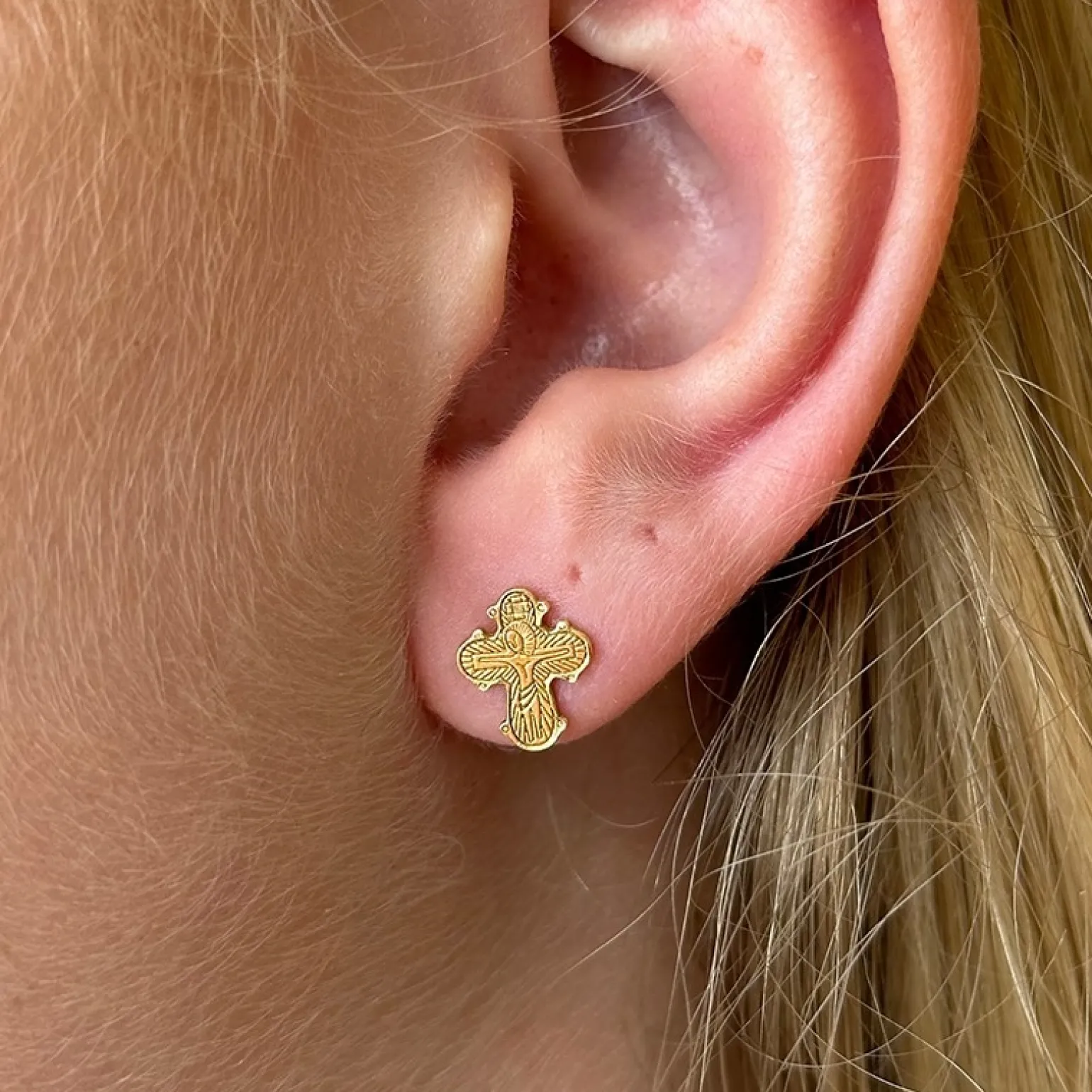 Dagmarkreuz Ohrringe in vergoldete silber von Siersbøl. Die Ohrringe messen 8 x 9 mm und haben eine gute Größe für das Ohrläppchen. Ohrringe mit Dagmarkreuz sind ideal für die Konfirmation oder andere Feierlichkeiten.