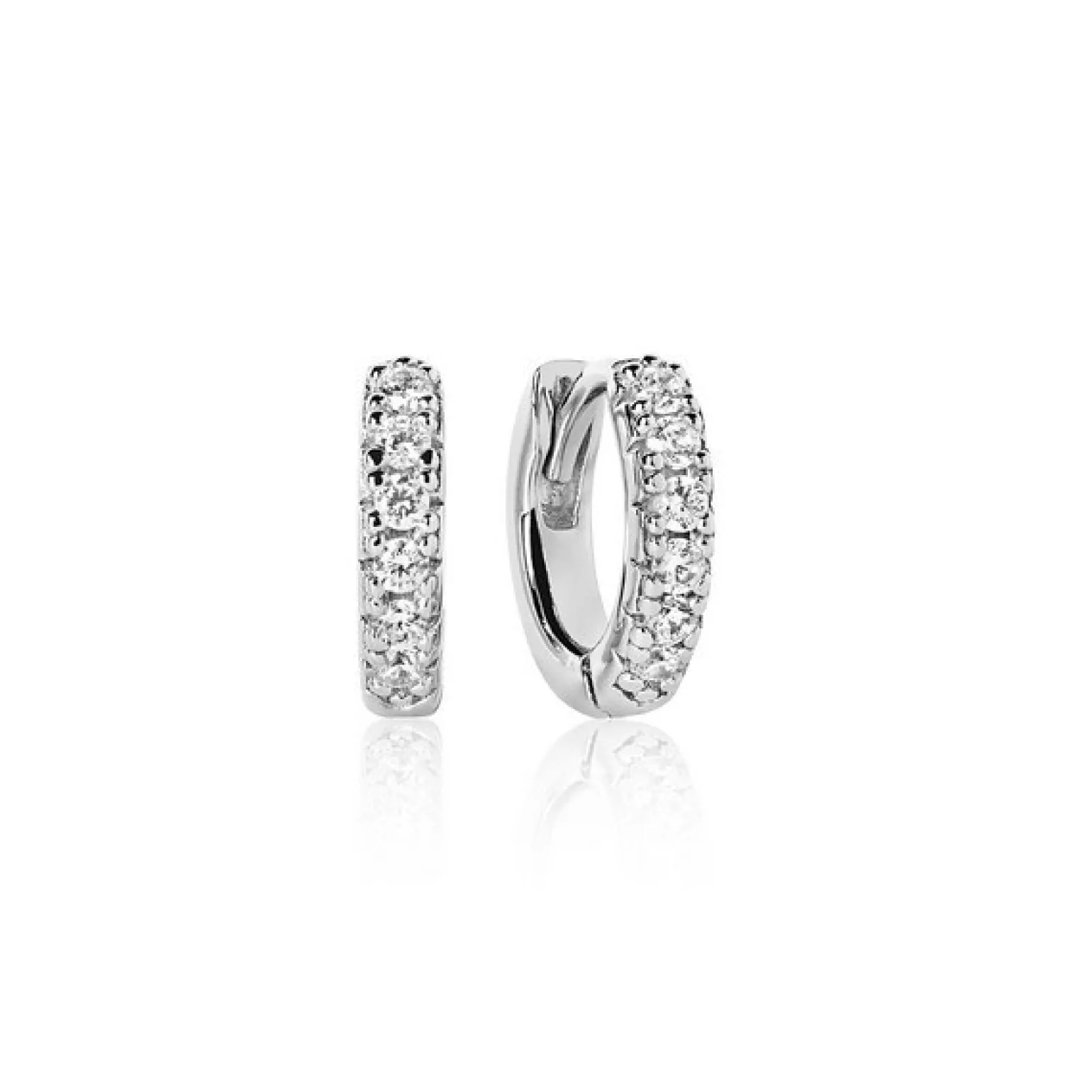 Ellera Piccolo in Silber mit Zirkonen von Sif Jakobs Jewellery. Die kleinen Creolen sind auf der Vorderseite mit Zirkonen besetzt, so dass Sie einen schlichten Ohrring für den Alltag erhalten.