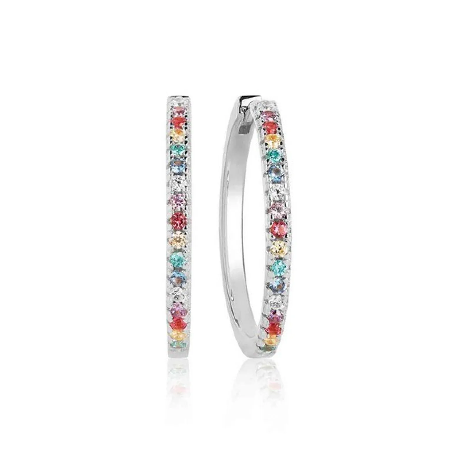 Die schönen Ellera X-Grande Creolen mit mehrfarbigen Zirkonen von Sif Jakobs Die X-Grande Creolen haben einen Durchmesser von 24 mm und sind aus klarem, rhodiniertem silber gefertigt.