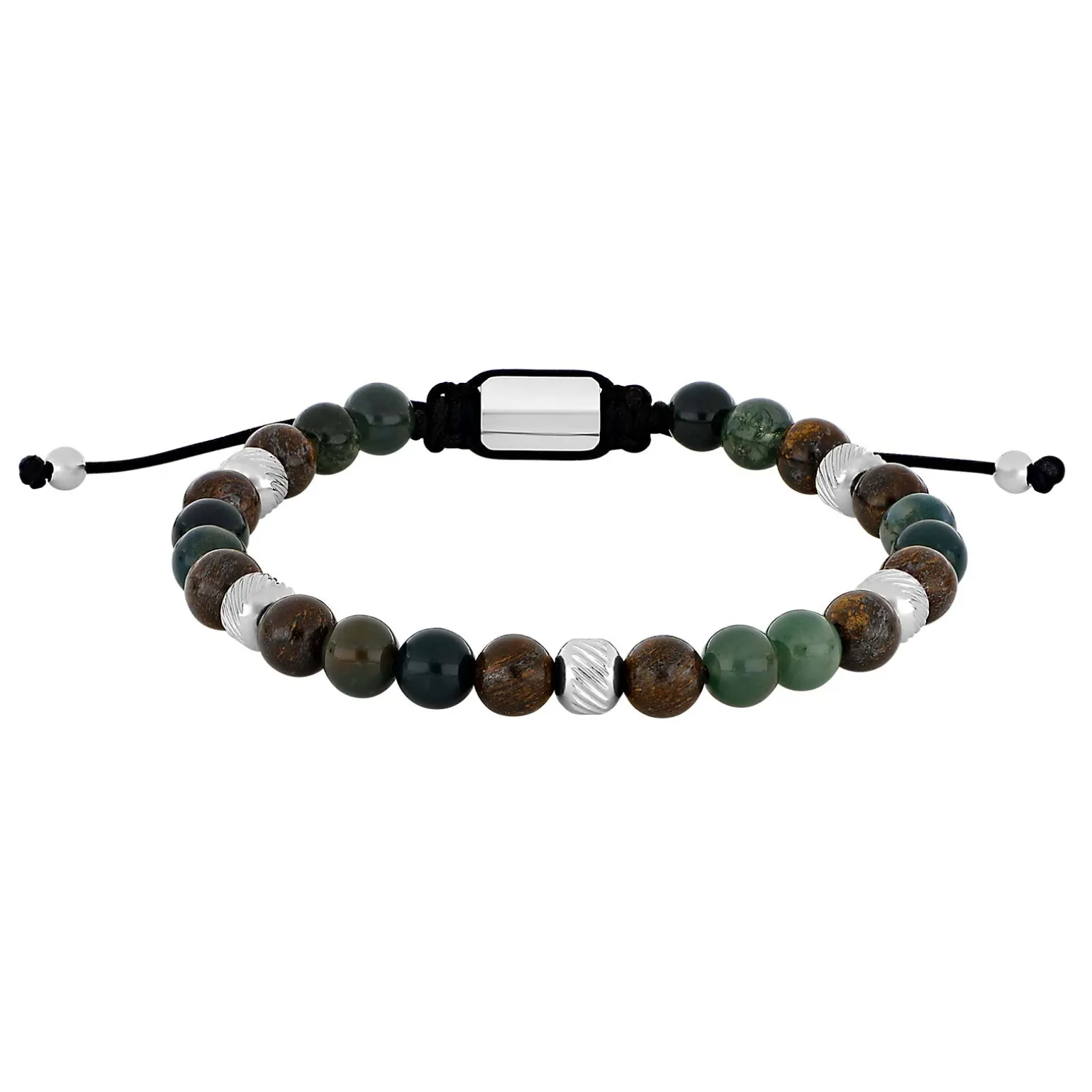 Exklusives armband mit Achat und Bronzitit in den Farben Grün und Braun aus der Herrenschmuckkollektion Son of Noa von Nordahl Andersen. Das Armband besteht aus Moosachat- und Ilmenit-Bronzitit-Perlen und in . Das Armband misst 19–25 cm. und kann in der Länge verstellt werden.