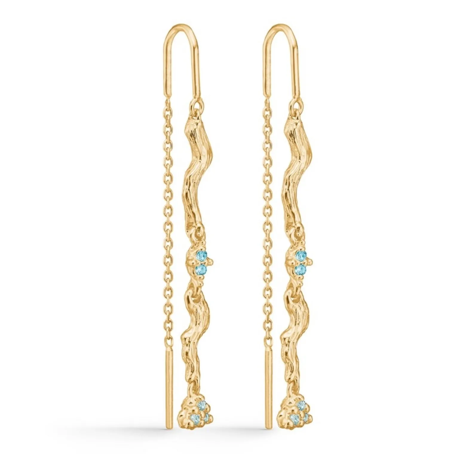 Studio Z – Tangled Ohrenketten in vergoldete silber w. blau zirkonia
